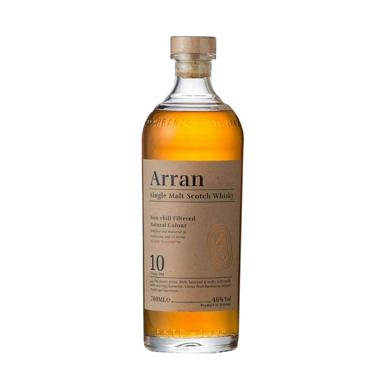 Arran Whisky și-a început producția în 1994. Pe 16 decembrie 1994 a început construcția distileriei în Lochranza. Pentru scurt timp acest proces a fost oprit din cauza unor vulturi aurii care și-au făcut cuib. Aceștia au devenit parte importantă din familia Arran, putând fi văzuți și în ziua de astazi. Centru de vizitatori a fost deschis chiar de Regina Elisabeta a II-a, în 1997, unde i s-au oferit și două butoaie de vin pentru Prinții William și Harry. Butoaiele încă se află în depozitul distileriei. Arran 10 Years Old aduce împreună aromele ghidate de tradiția scoțiană, oferind o experiență de degustare unică și memorabilă. Veți descoperi o simfonie de arome, începând cu note de vanilie și citrice. Gustul este bine echilibrat, având o ușoară condimentare de scorțișoară și o notă de dulce din lemn, care se îmbină într-un mod complex.