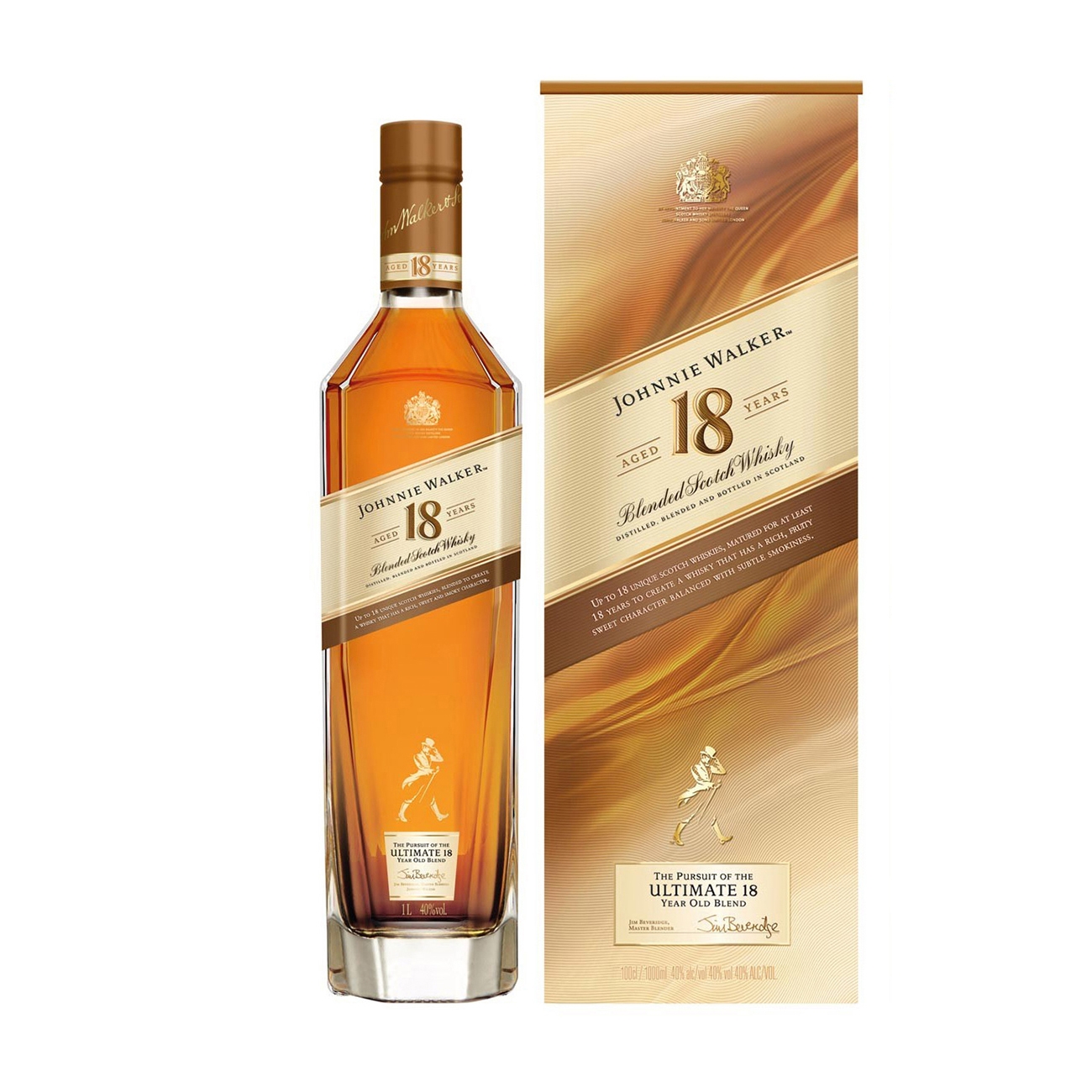 Încearcă inegalabilul whisky Johnnie Walker! Acesta vine cu o gamă largă de arome îndrăznețe și ediții limitate, fiind pregătit cu o sticlă perfectă pentru orice ocazie. Johnnie Walker 18 Years Old este un blend de whisky-uri atent selecționate după calitatea și aroma lor, toate maturate pentru cel puțin 18 ani. Acesta are o mireasmă bogată în note dulci și un gust plăcut cu note de vanilie, migdale și mandarine.