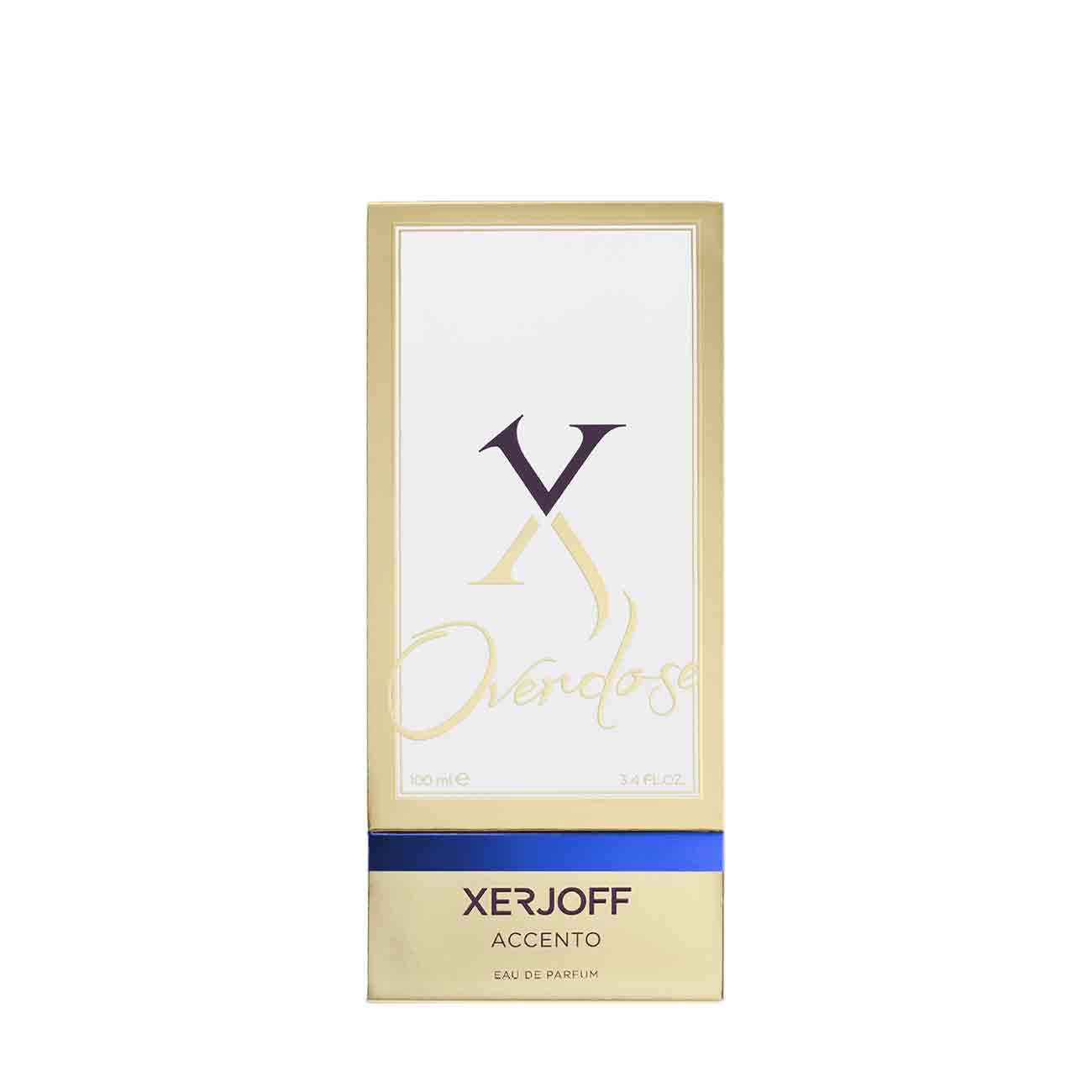 Xerjoff a fost fondat de Sergio Momo și Dominique Salvo cu o viziune de a aduce cele mai luxoase materiale și ingrediente în lumea parfumurilor. Cei doi fondatori au dorit să creeze parfumuri excepționale care să se potrivească celor mai opulente stiluri de viață globale. Fiecare flacon de parfum Xerjoff este o bijuterie, o capodoperă artistică realizată din sticlă de înaltă calitate și ambalată într-un înveliș luxos. Xerjoff te răsfață și îți învăluie pielea într-o aromă deosebită intitulată Accento Overdose. Notele fructate de vârf se îmbină armonios cu cele verzi, purtându-te lent către inima aromată de eucalipt și pin. Baza dezvăluie un amestec delicat de iasomie egipteană, trandafir bulgăresc și lăcrămioară.
