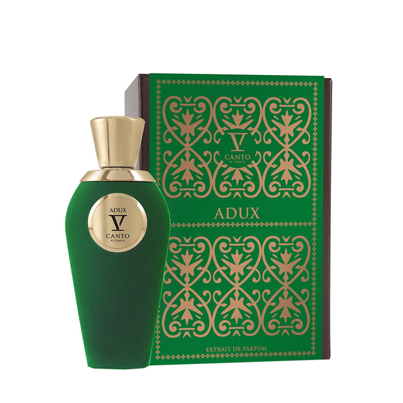 V Canto este o colecție de parfumuri semnată de Cereria Terenzi, iar inspirația din spatele acesteia constă în dragostea aprinsă purtată pentru locurile natale. Aceste parfumuri conțin câte o bucățică de istorie exprimată în arome. Adux este o creație olfactivă care evocă senzația unui refugiu pe malul mării, unde briza proaspătă a oceanului se întâlnește cu liniștea unei grădini de ierburi proaspete, toate îmbrăcate într-o dulceață subtilă. Adux este un parfum revigorant, cu note de vârf marine și acvatice, care evocă briza proaspătă a oceanului, urmată de o dulceață subtilă, asemănătoare caramelurilor sărate. În nota de mijloc, vanilia dulce se împletește cu accente erbacee și marine, oferind o senzație de calm și serenitate. Nota de bază este profundă, cu mosc și accente balsamice, conferind parfumului o senzație elegantă și de lungă durată, lăsând în urmă un trail memorabil.
