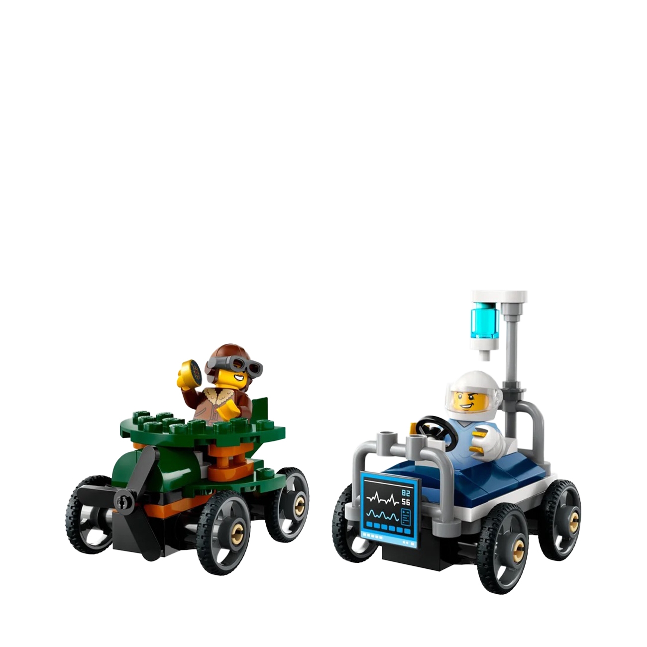 LEGO City Avion vs. Pat de Spital aduce o cursă plină de umor între un avion retro improvizat și un pat de spital transformat în vehicul de curse. Setul conține 70 de piese și este recomandat copiilor de peste 5 ani. Include două minifigurine amuzante, un pilot zâmbitor și un pacient entuziast, gata să anime orice scenă de joacă. Este o alegere excelentă pentru a stimula imaginația și distracția creativă.