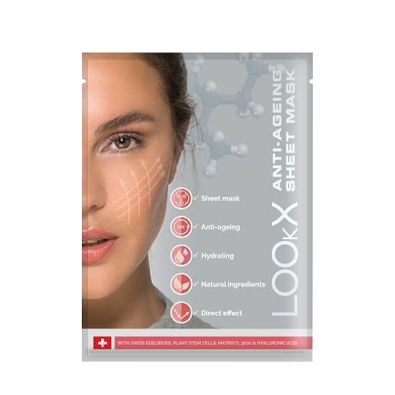 La LOOkX, fiecare produs este rezultatul unei cercetări meticuloase și al unei formule inovative, concepută pentru a răspunde nevoilor reale ale pielii. LOOkX creează cosmetice care se adaptează schimbărilor pielii, asigurându-ți o frumusețe naturală și radiantă, indiferent de provocările vremii sau de semnele trecerii timpului. Anti-Aging Sheet Mask este o mască revoluționară ce oferă un efect imediat de lifting și fermitate, reducând ridurile și protejând pielea de daunele cauzate de razele UV. Formula sa avansată, bazată pe tehnologia celulelor stem vegetale, stimulează regenerarea celulară și îmbunătățește elasticitatea pielii. Matrixyl 3000 ajută la producția de colagen și netezirea ridurilor, în timp ce extractul de Edelweiss acționează ca un antioxidant puternic, de două ori mai eficient decât vitamina C.