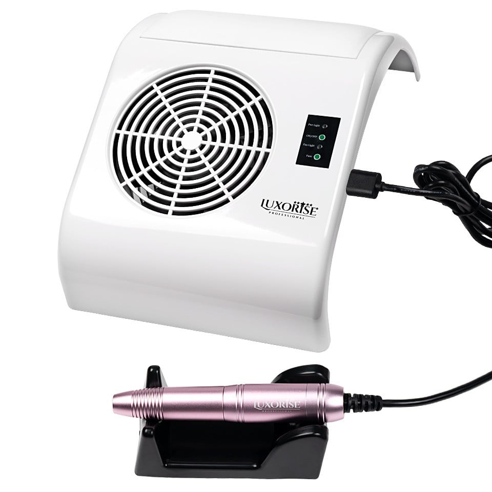 Aspirator praf unghii cu Freza Electrica Tornado Supreme 40W Rose Pink- LUXORISE , alb, Aparatura Unghii
