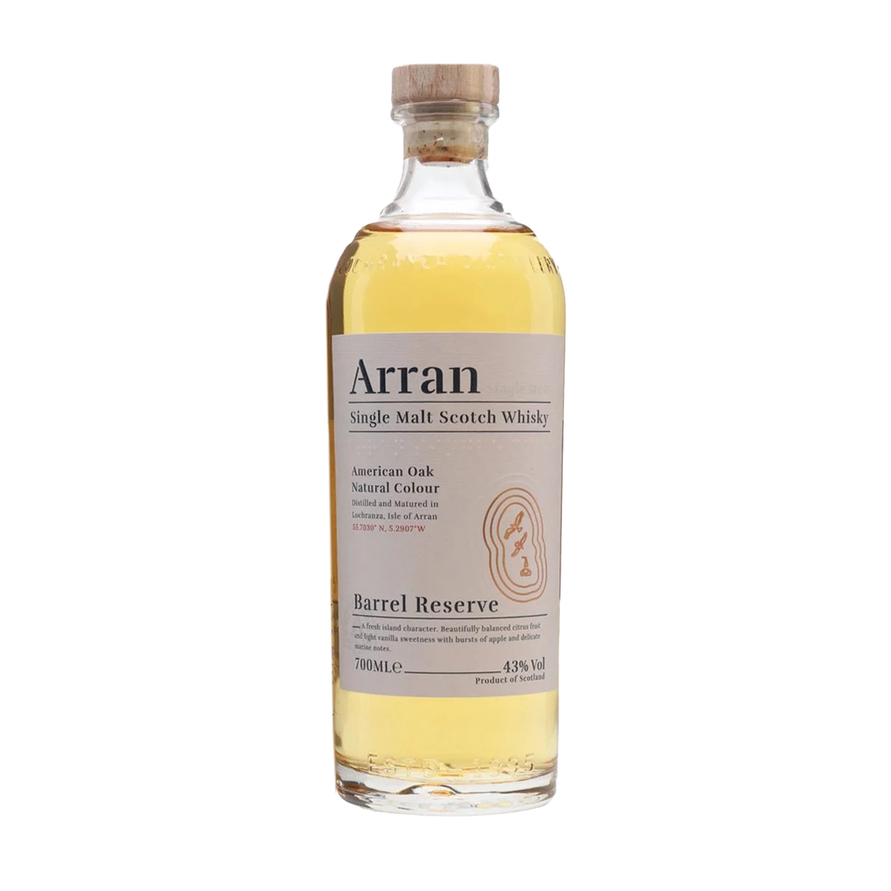 Arran Whisky și-a început producția în 1994. Pe 16 decembrie 1994 a început construcția distileriei în Lochranza. Pentru scurt timp acest proces a fost oprit din cauza unor vulturi aurii care și-au făcut cuib. Aceștia au devenit parte importantă din familia Arran, putând fi văzuți și în ziua de astazi. Centru de vizitatori a fost deschis chiar de Regina Elisabeta a II-a, în 1997, unde i s-au oferit și două butoaie de vin pentru Prinții William și Harry. Butoaiele încă se află în depozitul distileriei. Barrel Reserve este o celebrare a aromelor fructate și condimentate, rezultatul perfect al unei metode tradiționale de distilare. Profilul său complex este evident prin echilibrul aromelor de citrice și dulceața adăugată a vaniliei, iar finalul se încheie cu o notă dulce și picantă, ce evidențiază stejarul și merele.
