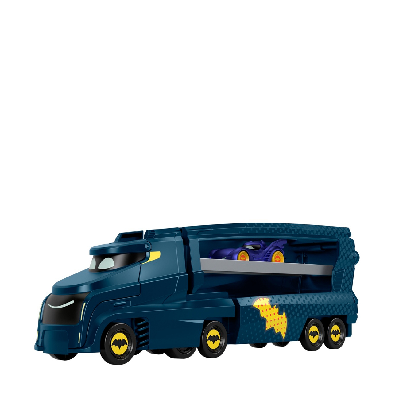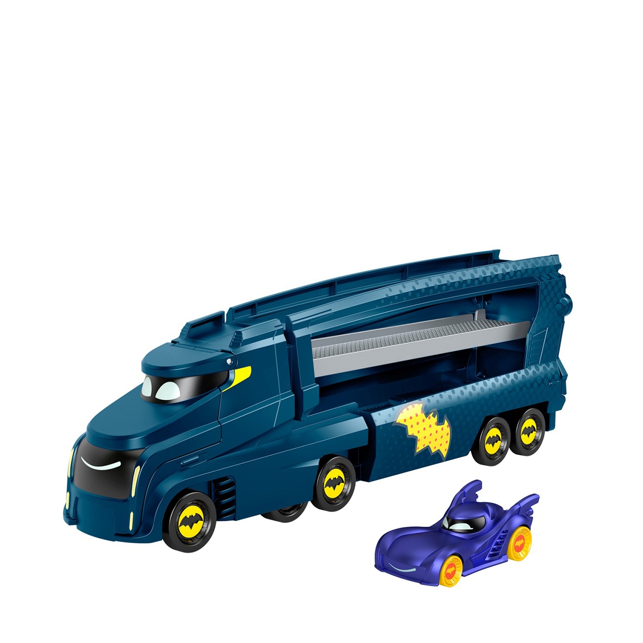 Camionul Bat Big Rig de la Fisher Price este un transportator robust inspirat din universul Batwheels, prevăzut cu roți mobile, detalii specifice Batman și o mașinuță inclusă, ideal pentru aventuri dinamice și joacă creativă.