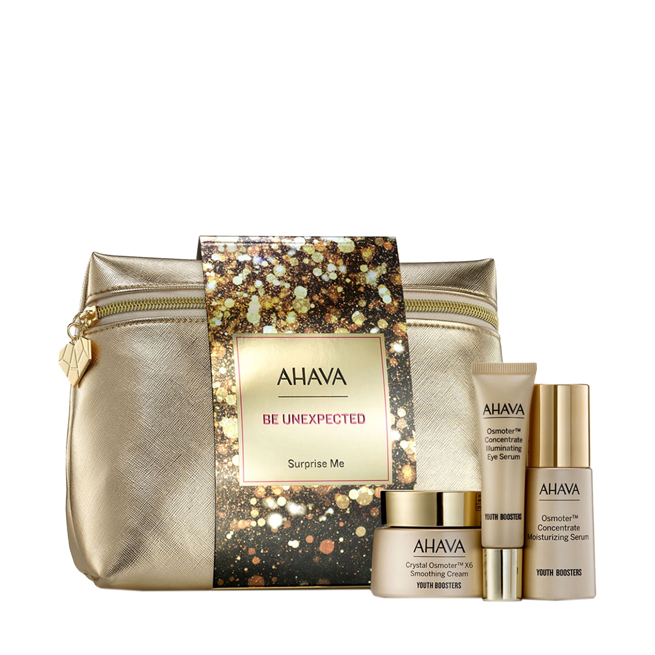 Ahava este singura companie de cosmetice care are facilități pe malul Mării Moarte. Marea Moartă este o sursă de neegalat de amestecuri de minerale naturale creditate cu îmbunătățirea aspectului și sănătății pielii. Această pasiune i-a atras pe fondatorii companiei să se stabilească în regiune și în cele din urmă să înființeze AHAVA în 1988. Be Unexpected Surprise Me oferă tot ce ai nevoie pentru un ten frumos într-un singur pachet, incluzând mai multe produse care te vor ajuta să îți creezi sau să îți îmbogățești rutina zilnică de îngrijire, oferindu-ți un moment de bucurie sau devenind un cadou perfect pentru cei dragi. Acestea conțin o formulă inovatoare care accelerează regenerarea pielii și îmbunătățește puterea restauratoare a nopții, reîntinerind aspectul general al pielii tale.