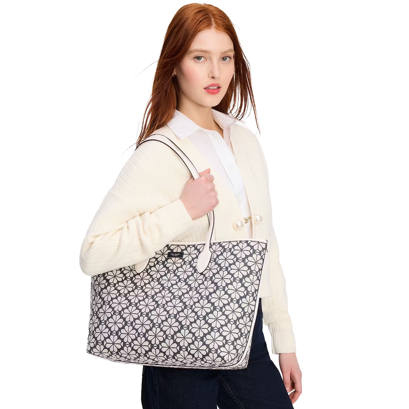 Kate Spade este un brand care s-a lansat în anul 1993 cu șase modele de genți, dar care în prezent oferă o gamă largă de produse precum articole vestimentare, încălțăminte, bijuterii și articole pentru decorarea locuinței. Principiile brand-ului îi definesc stilul unic, modern și sofisticat care își propune să ofere un sentiment de fericire prin fiecare produs creat. Bleecker Jacquard Tote Bag celebrează moștenirea textilă bogată cu un design inovator, combinând eleganța atemporală cu funcționalitatea modernă. Fabricată din jacquard texturat, cu modele țesute și nu imprimate, aceasta oferă un aspect și o senzație de lux. Modelul Spade Flower Jacquard aduce un strop de sofisticare și unicitate acestei genți mari, făcând-o ideală pentru toate nevoile tale zilnice.