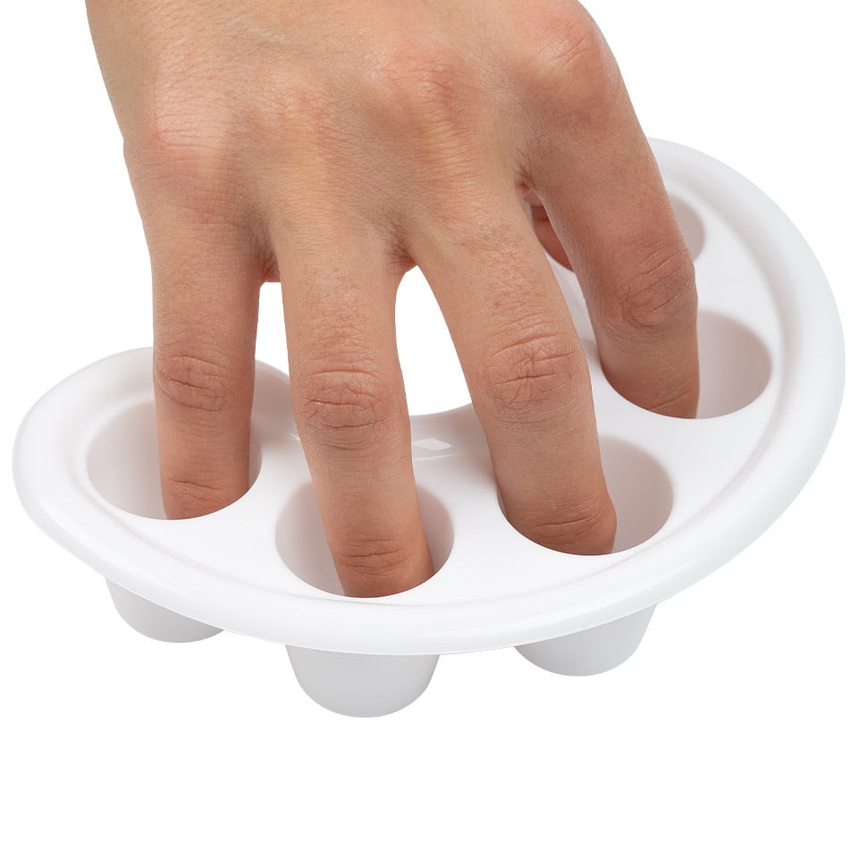 Indepartarea manichiurii va fi mult mai eficienta cu acest Bol din plastic cu 5 cupe . Fabricat din plastic rezistent, bolul poate fi utilizat pentru inmuierea cuticulelor inainte de curatarea acestora sau pentru indepartarea ojei de pe unghii. In cele 5 sloturi poti pune dizolvant pentru a indeparta lacul de unghii sau oja semipermanenta.