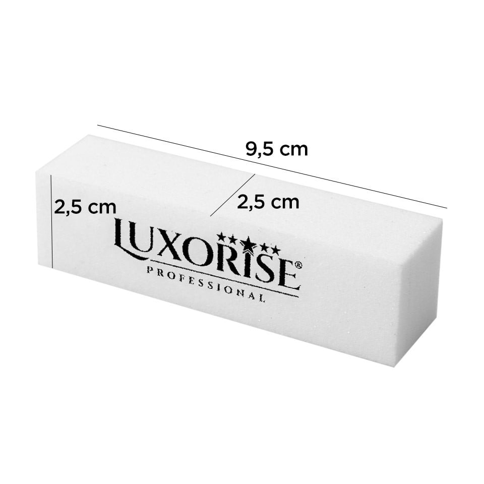 Buffer Unghii Fin LUXORISE, alb cu 4 fete si granulatie fina are dimensiunea perfecta pentru a intra in peretii laterali ai unghiei si in apropierea cuticulei fara a cauza abraziune. Buffer-ul este rezistent si foarte usor de utilizat. Dimensiuni: 9,5 x 2,5 cm