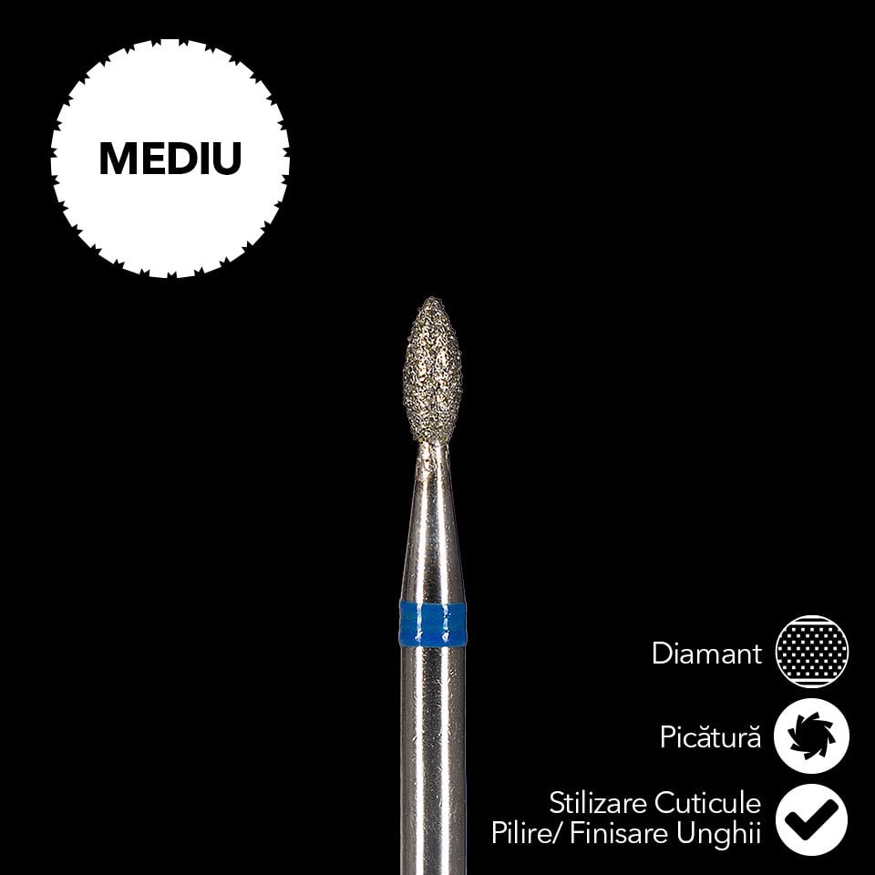 Capat Freza Diamant LUXORISE Conica, duritate medie GS06 este compatibila cu orice model de freza de pe piata, avand dimensiune standard. Bitul pentru freza este ideal pentru modificarea si ingrijirea unghiilor naturale, a cuticulei si a pielii intarite . Freza este potrivita atat pentru manichiura, cat si pentru pedichiura, deoarece permite manevrarea cu precizie si faciliteaza stilizarea cuticulelor si a unghiilor. Finisajele la cele mai inalte standarde calitative garanteaza un confort inalt in timpul utilizarii. Caracteristici Diametru: 1,9 mm Lungime: 4,4mm Lungime totala bit: 42,5mm Usor de curatat,dezinfectat si sterilizat.