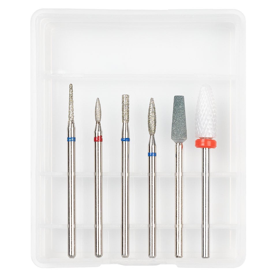 Capete Freza Unghii LUXORISE #03 contine 5 bituri imbunatatite cu pudra de diamant si 1 bit ceramic, fiind special create pentru orice pila electrica. Cele 6 capete sunt folosite pentru polizare si pot fi folosite atat la manichiuri, cat si la pedichiuri. Formele diferite permit efectuarea mai multor operatiuni de stilizare a unghiilor. Capetele de freza sunt compatibile cu orice tip de freza electrica. Avantaje: - Rezistenta indelungata - Potrivita pentru ambele sensuri de rotatie ale frezei electrice de unghii - Stilizarea cuticulelor - Pregatire si nivelare unghii naturale - Curatare usoara - Ideal pentru matuirea suprafetei unghiei - Destinat pentru uz profesional