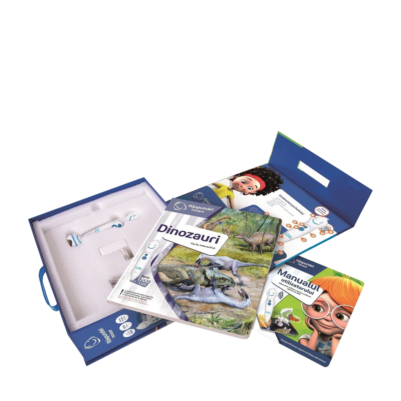 Răspundel Istețel le oferă copiilor un mod interesant și distractiv de a învăța lucruri. Acesta le prezintă celor mici o lume magică a cunoașterii accesibilă chiar și pentru preșcolarii care încă nu știu să citească. Atinge o imagine sau un text cu creionul special și cartea îți va prezenta informații, sunete sau muzică. Această carte îi ajută pe cei mici să descopere lumea fascinantă a dinozaurilor și va trezi în aceștia dorința de cunoaștere. Setul conține creion și carte.