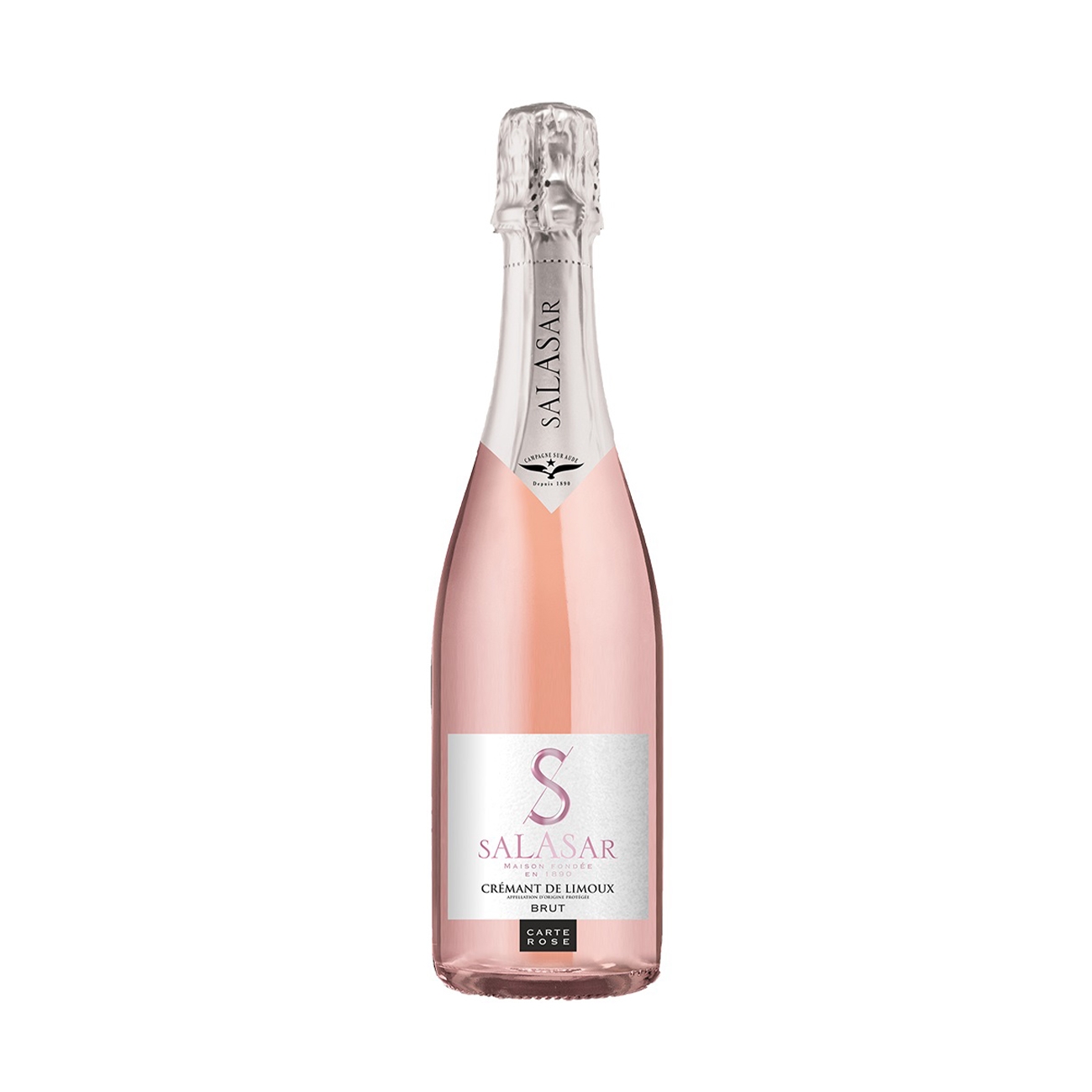 Maison Salasar Cremant De Limoux Carte Rose este un rose spumant, elegant și surprinzător. Realizat din soiurile de struguri Chardonnay, Chenin și Pinot Noir, acesta te învăluie în arome delicioase de fructe roșii, iar acordul de note minerale oferă un plus de prospețime acestei sticle.