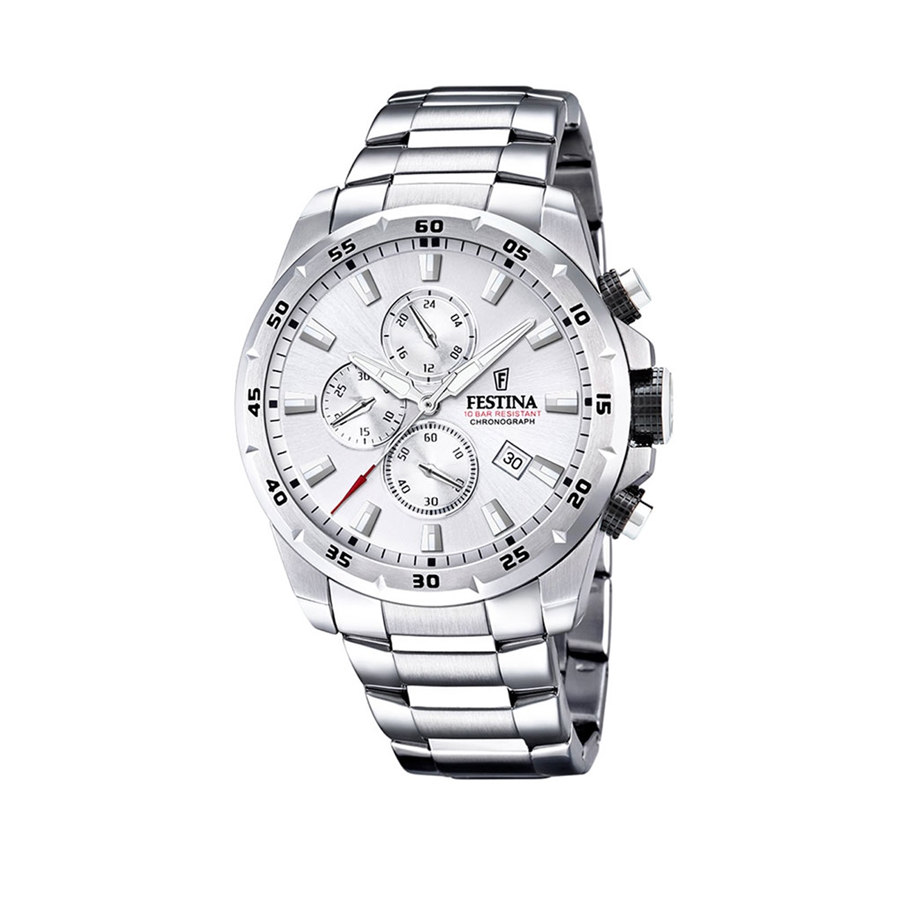 Festina crede în potențialul fiecărui moment de a deveni o emoție. Ei merg pe principiul că timpul trebuie umplut cu pauze pentru a te bucura de fiecare moment. Cu o experiență de peste un secol, acest brand este sinonim cu pasiunea, eleganța și funcționalitatea. Sportivitate, acesta e cuvântul care poate descrie acest ceas. După cum spune și numele, acesta dispune de funcția cronograf, una din cele mai precise din lume. Desigur că aduce și funcționalitate ridicată dispunând de dată și o rezistență la apă de 100 m pentru a fi sigur că o să funcționeze vreme îndelungată