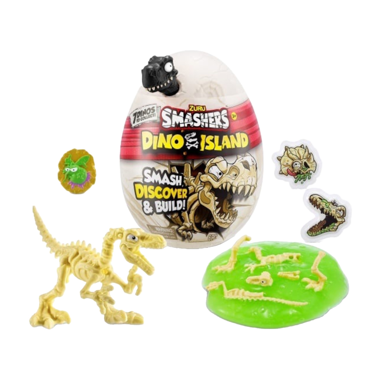 Acest produs este disponibil în mai multe modele. Acesta se vinde individual, iar livrarea se va realiza în mod aleator. Nu se poate alege un anumit model. Pregătește-te pentru o aventură spectaculoasă pe insula dinozaurilor cu oul surpriză Zuru Smashers Dino Island! Sparge oul misterios pentru a descoperi piese ascunse, slime colorat, creaturi amuzante și scheletul unui dinozaur pe care îl poți construi piesă cu piesă. Fiecare ou conține 6 elemente surpriză care transformă joaca într-o experiență plină de suspans și distracție.