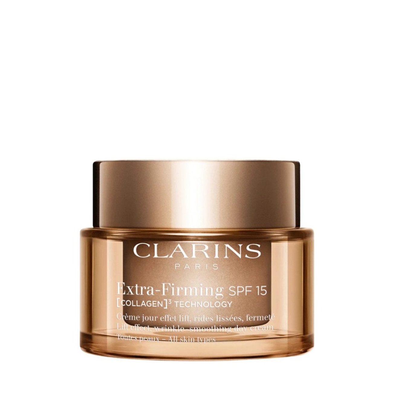 Brand-ul Clarins a fost înființat în anul 1954 de către Jacques Courtin-Clarins. Acesta are la bază două principii: nevoile femeilor și dragostea pentru natură. Clarins își propune să înțeleaga nevoile femeilor și să creeze pentru acestea cele mai bune soluții provenite din natură. Extra-Firming Day Cream SPF15 este un tratament inovator creat pentru a stimula fermitatea pielii, vizibil îmbunătățind colagenul într-un timp scurt. Formula sa, bazată pe [COLLAGEN] TECHNOLOGY, combină polipeptidul de colagen, extractul de nuc pecan și mitracarpus, pentru a acționa direct asupra colagenului. Niacinamida uniformizează și luminează tenul, în timp ce protecția SPF 15 ajută la apărarea împotriva razelor solare. Crema oferă o piele mai fermă, riduri netezite, pomeți mai conturați și un contur facial mai bine definit.