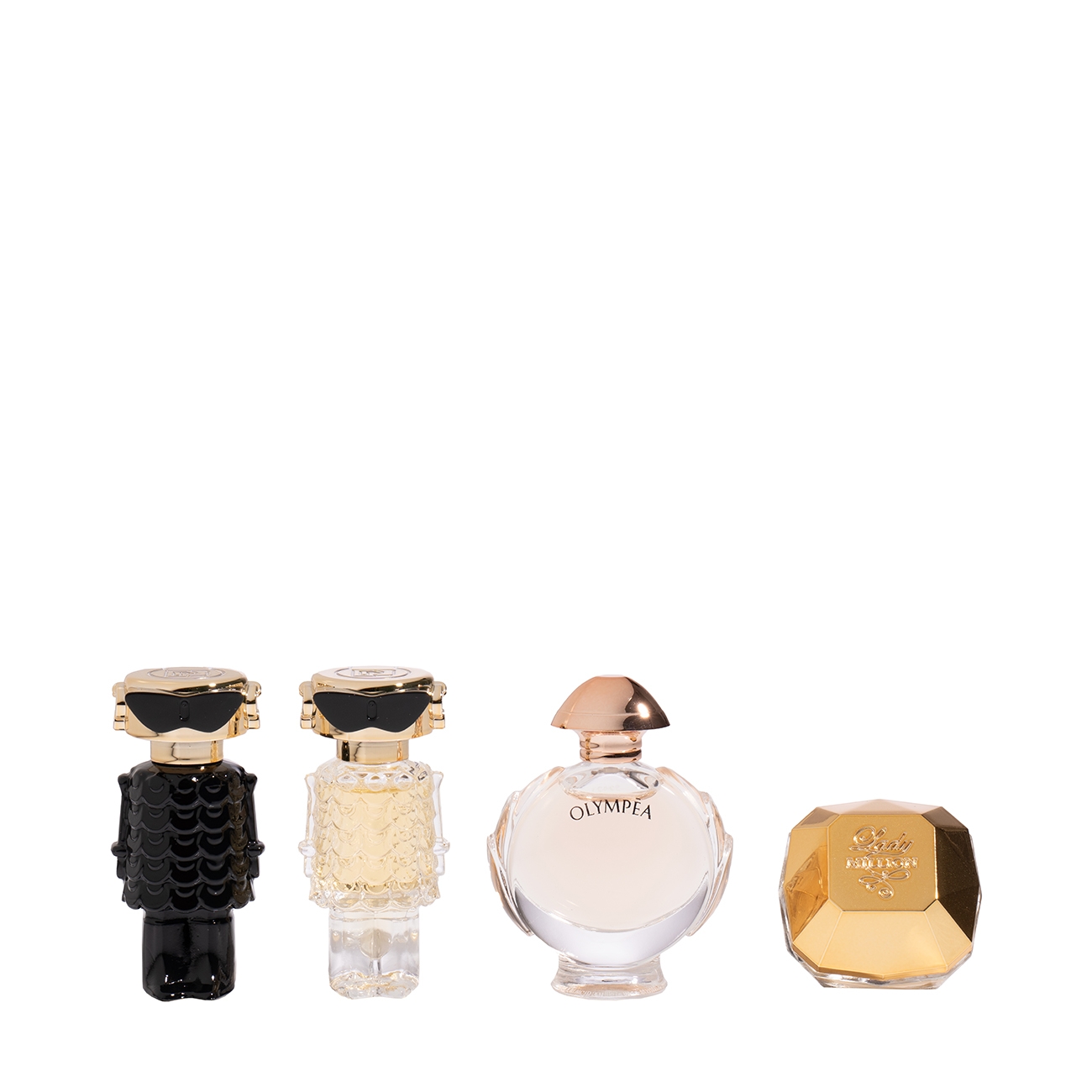 Acest coffret exclusiv de miniaturi Rabanne îți oferă oportunitatea de a explora patru dintre cele mai îndrăgite și apreciate arome ale brandului. Fiecare parfum are o poveste și o personalitate unică, invitându-te într-o călătorie olfactivă fascinantă. Fiecare miniatură din coffret îți oferă o parte diferită din universul Rabanne. Fame și Fame Parfum te îmbracă într-o aură modernă și seducătoare, în timp ce Lady Million aduce o notă de lux și glamour. Olympéa, cu alura sa puternică și captivantă, este ideal pentru cei care preferă o semnătură olfactivă impunătoare.
