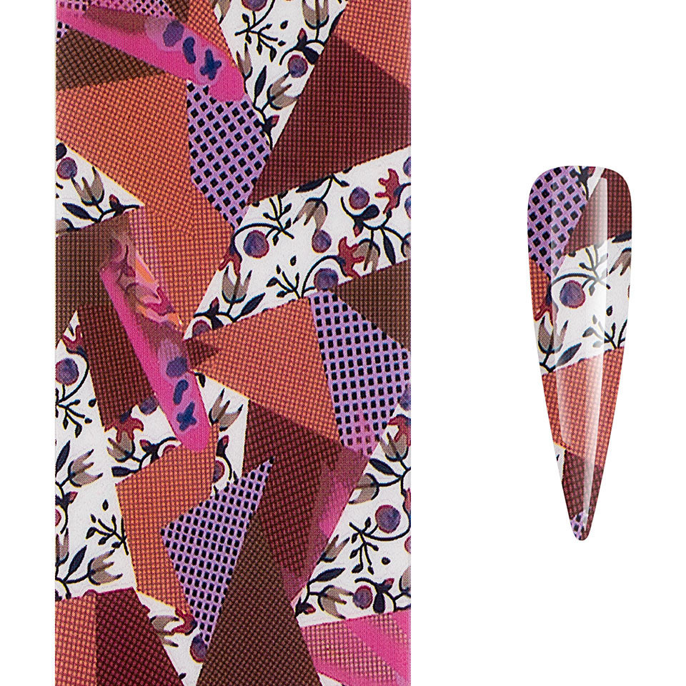 Folie de Transfer Unghii LUXORISE #615 este produsul premium ideal pentru a fi folosit in procesul de decorare al unghiilor naturale sau false, cu gel sau acryl. Imprimeul inedit care va ramane pe unghii in urma utilizarii foliei de transfer va fi in ton cu tendintele actuale. Aceasta folie de transfer unghii te va ajuta sa obtii modele in trend. Mai mult decat atat, folia de transfer se poate folosi pe intreaga suprafata a unghiei sau doar pentru a crea modele de nail art. Mod de utilizare pentru folie transfer unghii: - se curata bine unghia naturala sau falsa - se aplica un strat de lipici special pentru folie de transfer unghii, fie pe toata unghia, fie intr-o anumita forma, pentru un model anume - dupa ce lipiciul a devenit transparent, se aplica folia de transfer pe unghie, tinand apasat si niveland bine stratul de foita - se trage folia de pe unghie, dintr-o singura miscare rapida, iar aceasta va ramane aplicata pe locurile unde a fost adaugat adezivul.