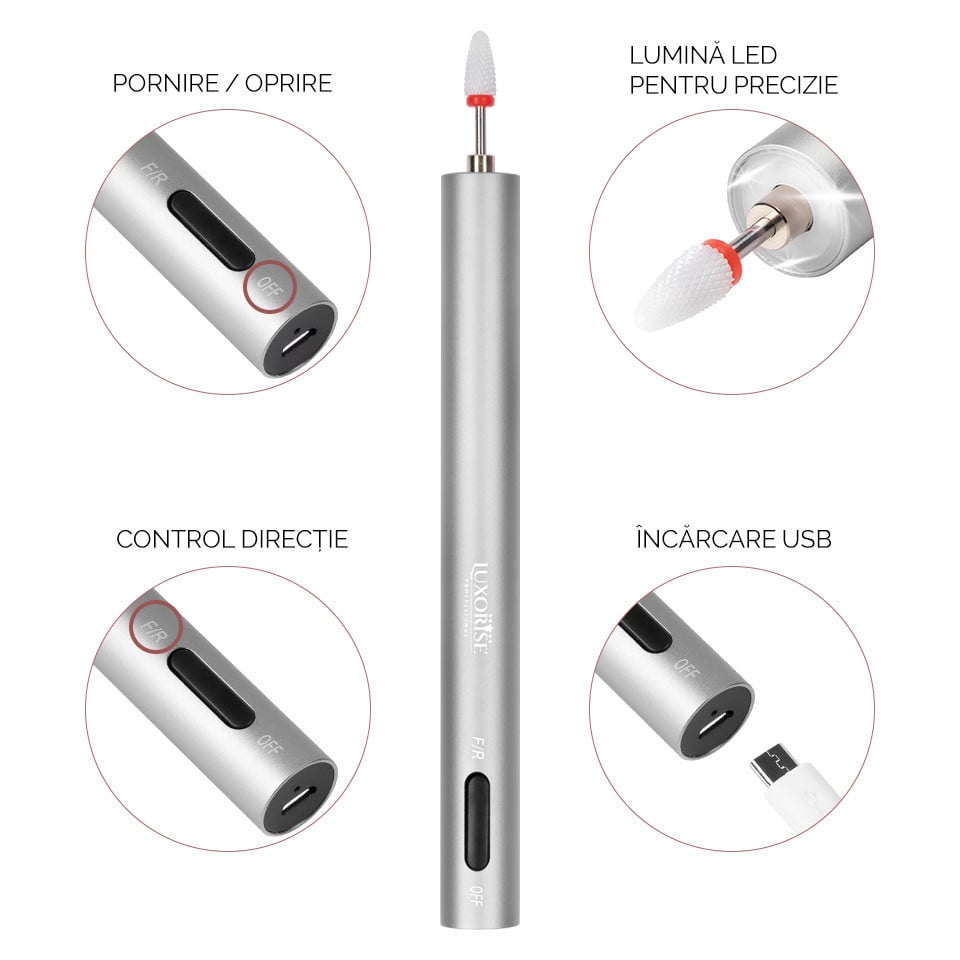 Freza Unghii Portabila TITANIUM PEN PRO - LUXORISE, Silver, Aparatura Unghii