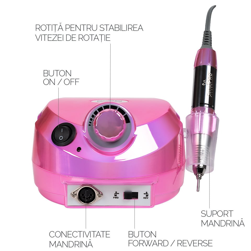 Freza Unghii Profesionala Elite Nails 30.000 RPM - SensoPRO Milano, Royal Pink, Aparatura Unghii