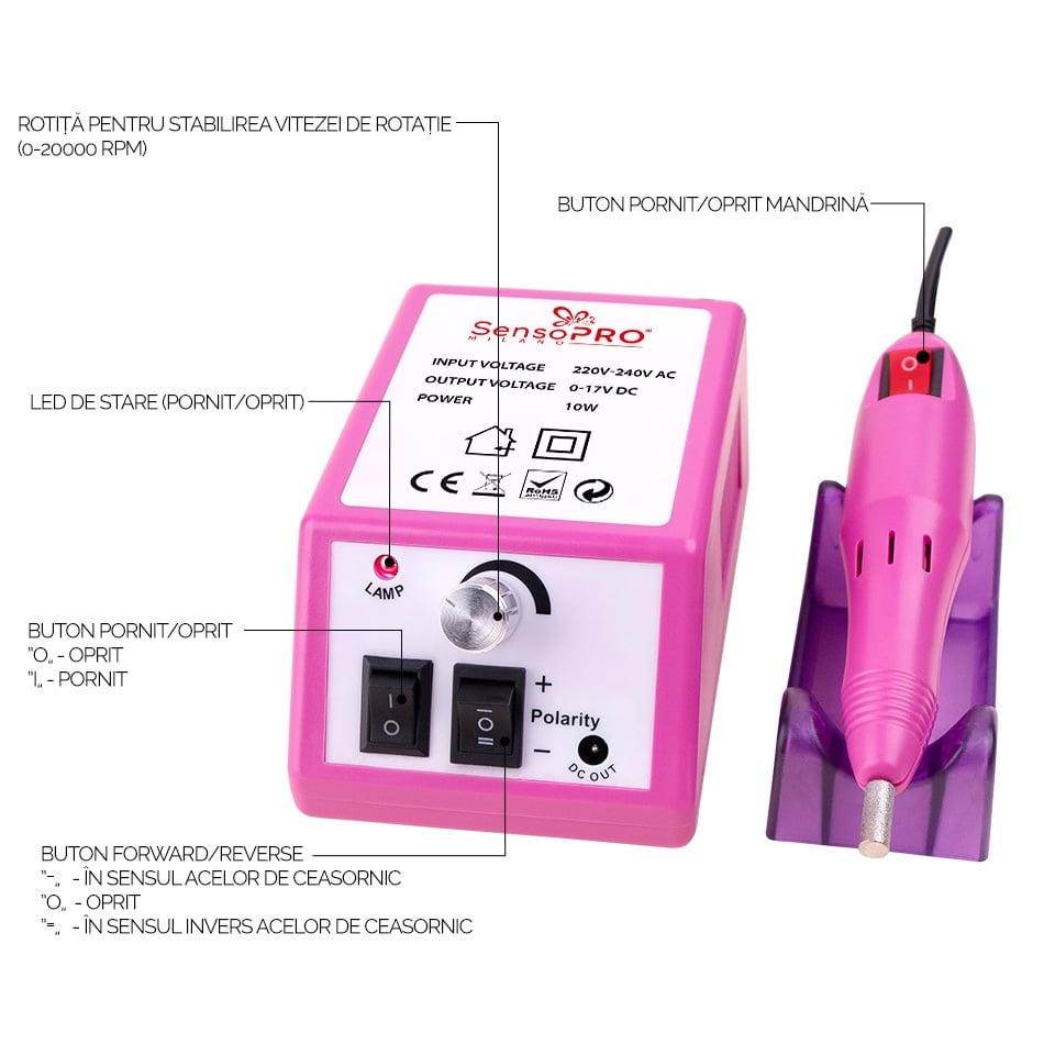 Freza Unghii Profesionala Star Nails SensoPRO Milano 20000 RPM, Roz, Aparatura Unghii