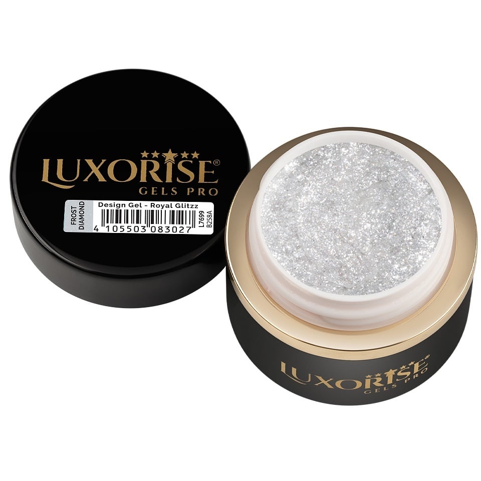 Gelul Design 3D LUXORISE - Royal Glitz, Frost Diamond vine într-un ambalaj de 5ml, suficient pentru a crea numeroase modele. Este un produs destinat utilizării profesionale, dar și pentru pasionații de nail art care doresc să își îmbunătățească tehnicile.