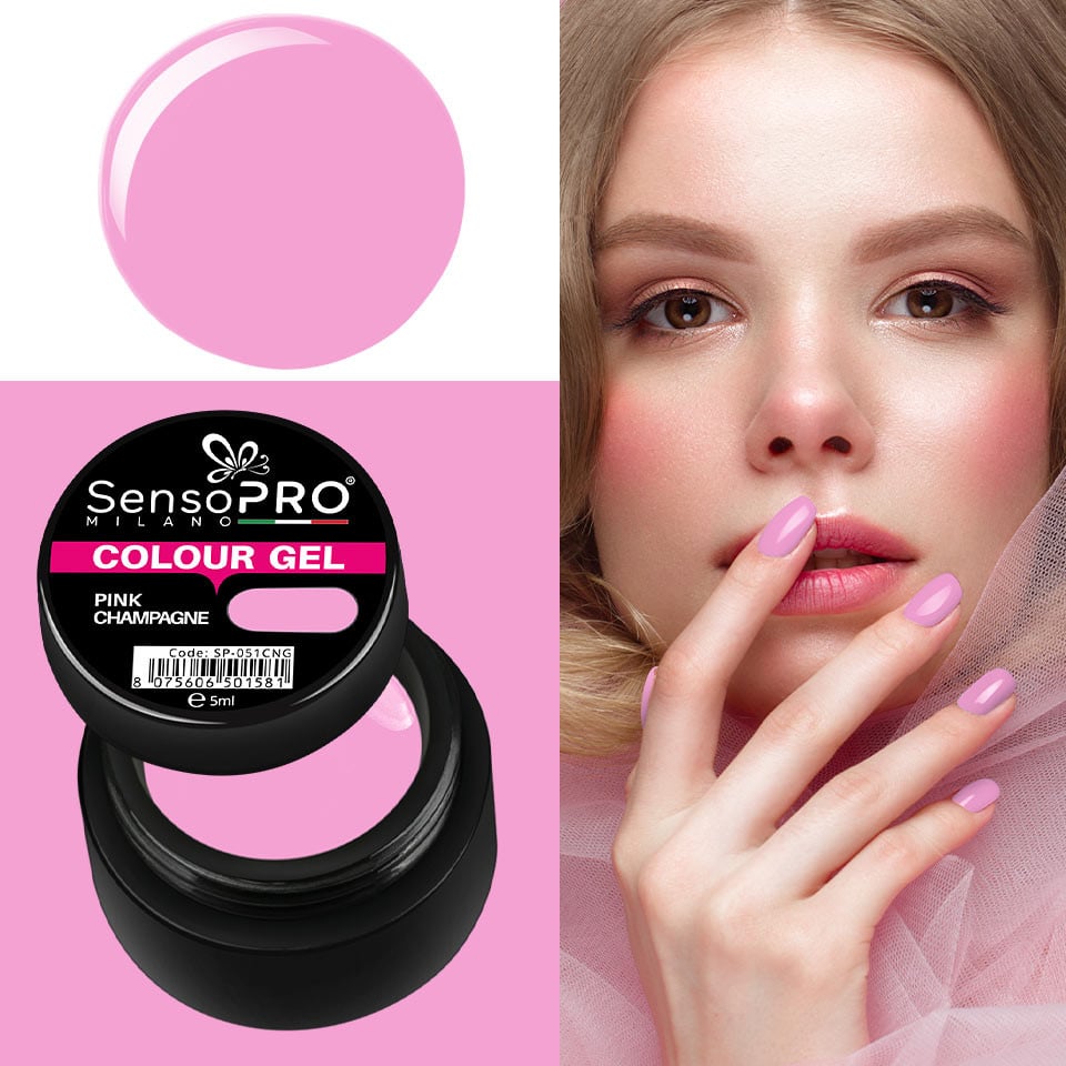 Gel UV Colorat Pink Champagne 5ml, SensoPRO Milano, Geluri UV