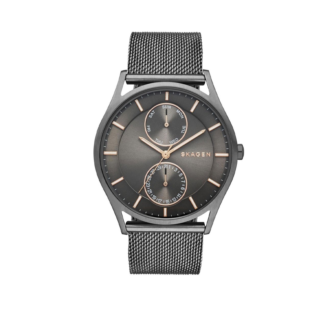 Skagen este un brand născut în Danemarca, ce îți aduce accesorii moderne, jucăușe și pline de personalitate. Acest ceas bărbătesc face parte din colecția Holst, funcționează cu un mecanism quartz și este rezistent la contactul cu apa până la 50m. Are un cadran analog gri cu geam din cristal mineral și afișează data, ora și minutele. Carcasa și brătara sunt fabricate din oțel inoxidabil gri.