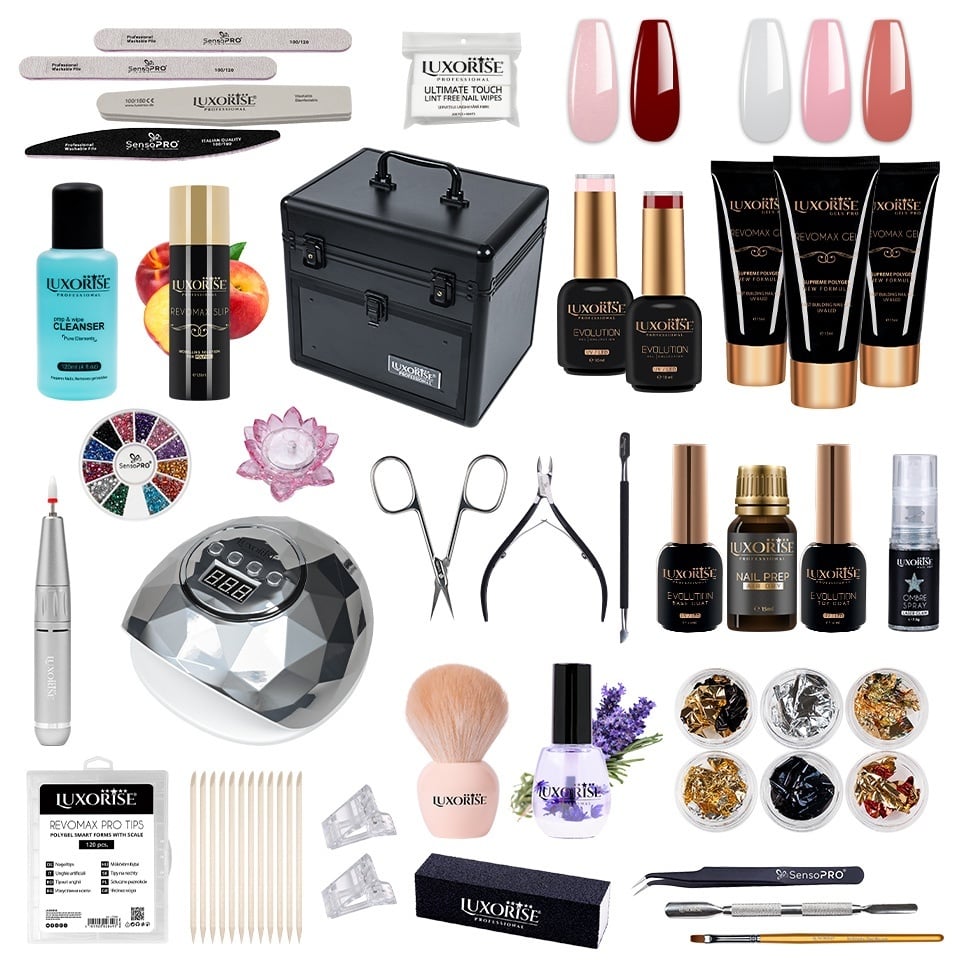 Kit Polygel REVOMAX LUXORISE MASTER Sculpt cu Lampa & Freza + CADOURI, Kit Unghii
