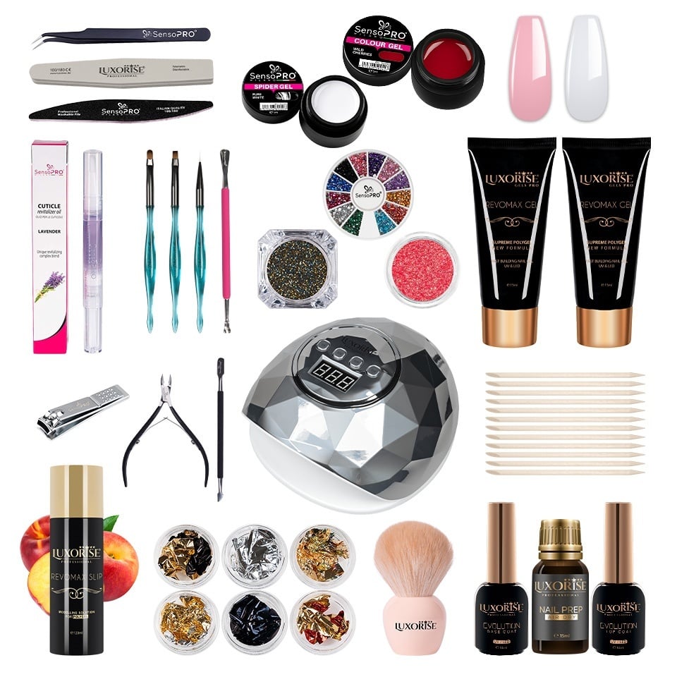 Kit Polygel REVOMAX LUXORISE Vision Sculpt cu Lampa + CADOURI, Kit Unghii