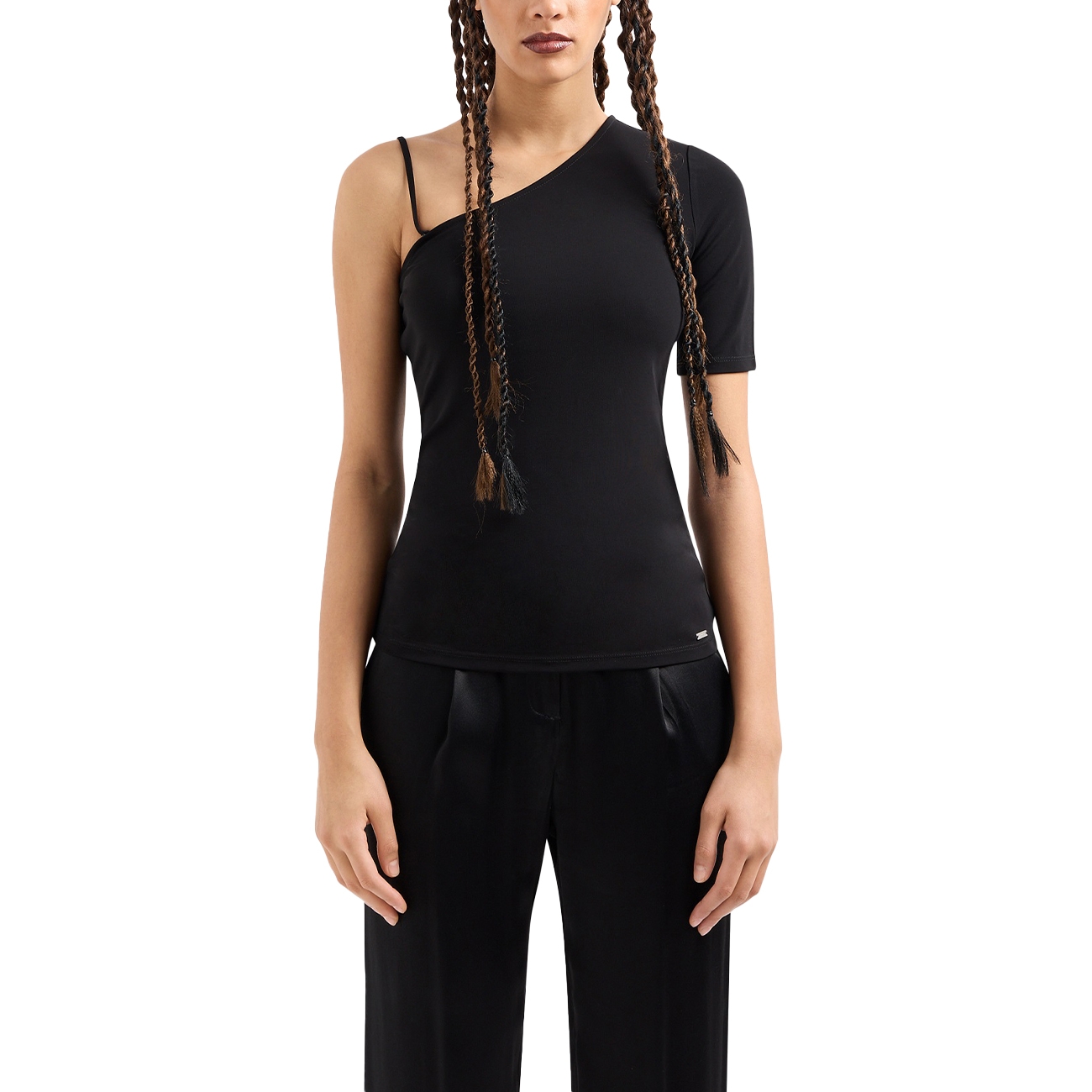 Armani Exchange este o extensie a brandului lansat în 1991 de către Giorgio Armani, o linie special concepută pentru a ilustra cele mai noi tendințe potrivite pentru toți amatorii stilului urban. Tricoul A|X Armani Exchange pentru femei îmbină eleganța cu un stil tineresc, având un design modern cu umăr descoperit. Confecționat dintr-un jerseu din viscoză de înaltă calitate, acest top are o croială ajustată care evidențiază silueta. Mâneci scurte și bretele reglabile adaugă un plus de confort și versatilitate, permițându-ți să personalizezi ajustarea.
