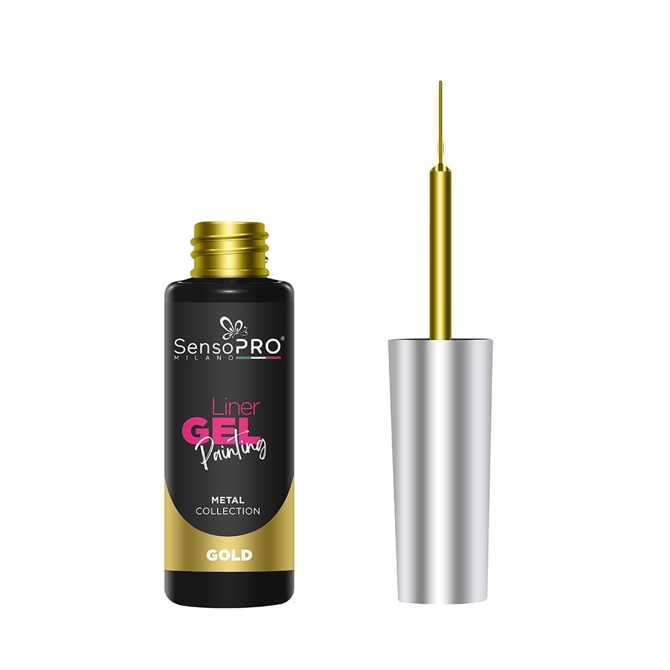 Liner Gel UV Pictura Unghii SensoPRO Milano Metal - Gold 8ml este un produs inovator care transformă manichiura obișnuită într-o operă de artă. Cu o textură cremoasă și o pigmentare intensă, acest gel este ideal pentru pasionatele de nail art care doresc să adauge detalii fine și precise unghiilor lor. Pensula ultra-fină integrată permite realizarea de linii subtiri și contururi, făcându-l un instrument esențial în trusa de unghii a oricărei iubitoare de frumusețe.