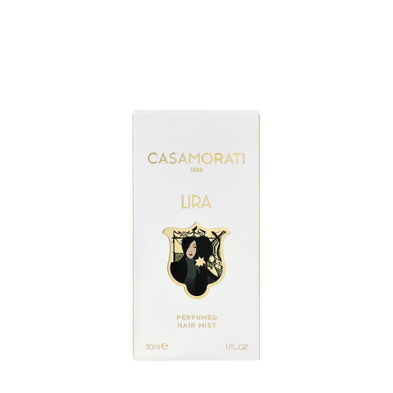Casamorati este o casă de parfumuri fondată în Italia în secolul al XIX-lea, numită "La Fabbrica di Profumi di C. Casamorati." Această casă de parfumuri are o istorie bogată și autentică în parfumerie. Colecția păstrează tradiția utilizării celor mai fine materiale de calitate, care au fost inițial folosite în fabrica de parfumuri fondată în Bologna în 1888. Aceste materiale de calitate pot fi apreciate în continuare în parfumurile din colecție. Colecția Casamorati a fost reînviată la nivel internațional de către Sergio Momo, continuând tradiția și expresia artistică a parfumeriei italiene. Lira Hair Spray este o esență pentru păr cu o soluție hidroalcoolică siliconizată, ce se aplică pe tulpinile părului, având la bază Panthenol (Vitamina B5) pentru îngrijirea și condiționarea keratinei, formând un film fin, ușor și mătăsos care prelungeste durata parfumului, conferind părului moliciune, strălucire, volum și ușurință. Lira este o stea enigmatică și provocatoare, care îmbină ficțiunea cu realitatea, mișcându-se cu încredere și un flair teatral. Farmecul său irezistibil, dezvăluit printr-un amestec de citrice mediteraneene, flori de lavandă, trandafir din Bulgaria, iasomie narcotică din Egipt și o poțiune intoxicantă de Vanilie și Caramel, este completat de condimente orientale și flori de lemn dulce, evocând povești seducătoare și vise vii despre iubirile sale misterioase.