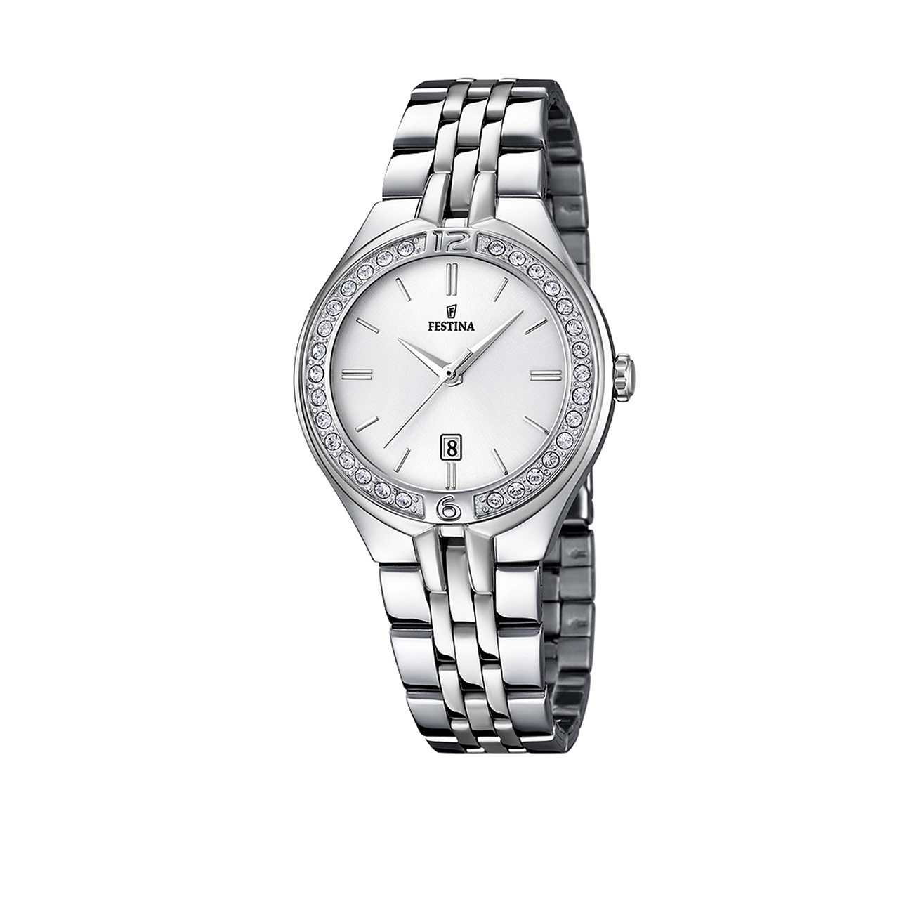 Acest ceas fabulos Festina Mademoiselle ce straluceste in orice lumina adauga o nota glamour tintelor tale de zi cu zi. Ceasul este realizat din otel inoxidabil de cea mai buna calitate si are o rama cu aplicatii de cristale, pozitionata in jurul unui cadran argintiu cu indicatori orari eleganti de tip linii si cristale. Bratara din otel inoxidabil completeaza perfect aspectul sofisticat feminin al acestui accesoriu.