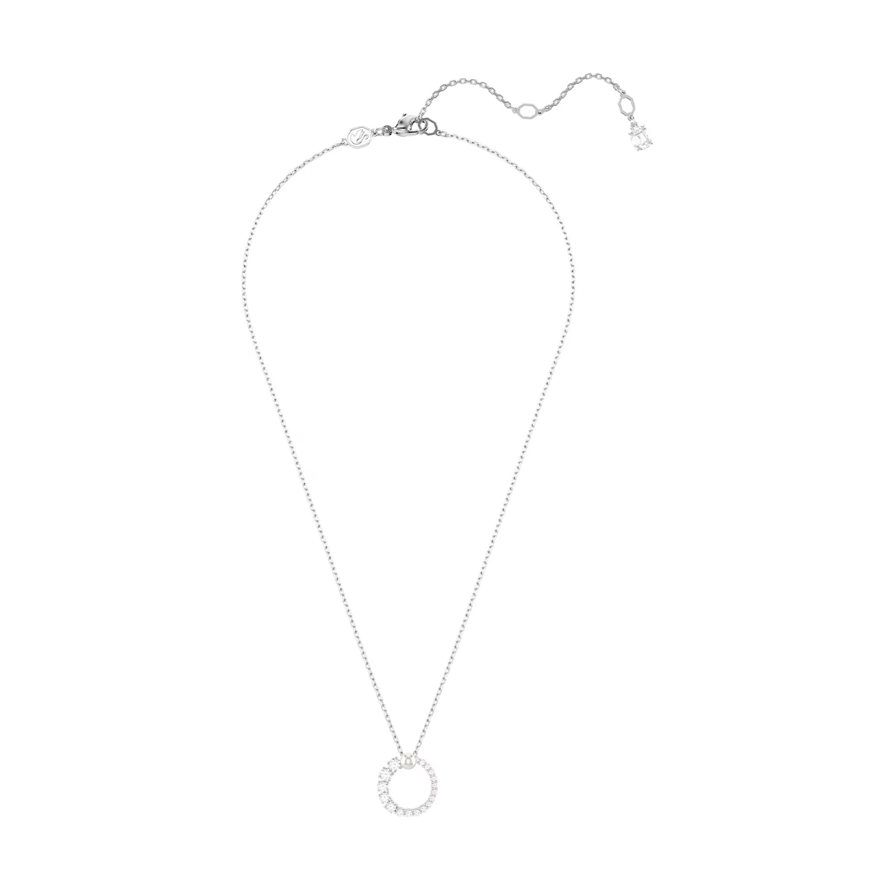 Colierul pentru femei Swarovski Matrix impresionează prin eleganța sa modernă și strălucirea deosebită a cristalelor transparente. Designul său circular, parțial decorat cu cristale de diferite dimensiuni montate simetric, oferă un joc vizual subtil și rafinat. În partea superioară a pandantivului se află o perlă albă stilizată, care adaugă o notă delicată și sofisticată compoziției.