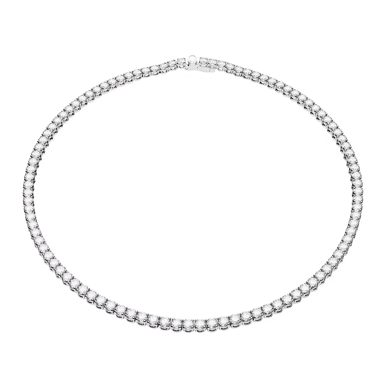 Colierul Swarovski Matrix Tennis aduce un plus de eleganță oricărei ținute datorită designului său clasic și strălucirii discrete. Realizat din cristale incolore perfect aliniate pe o montură placată cu rodiu, acest accesoriu se remarcă prin rafinament și versatilitate, fiind ideal atât pentru ocazii speciale, cât și pentru stilul de zi cu zi.