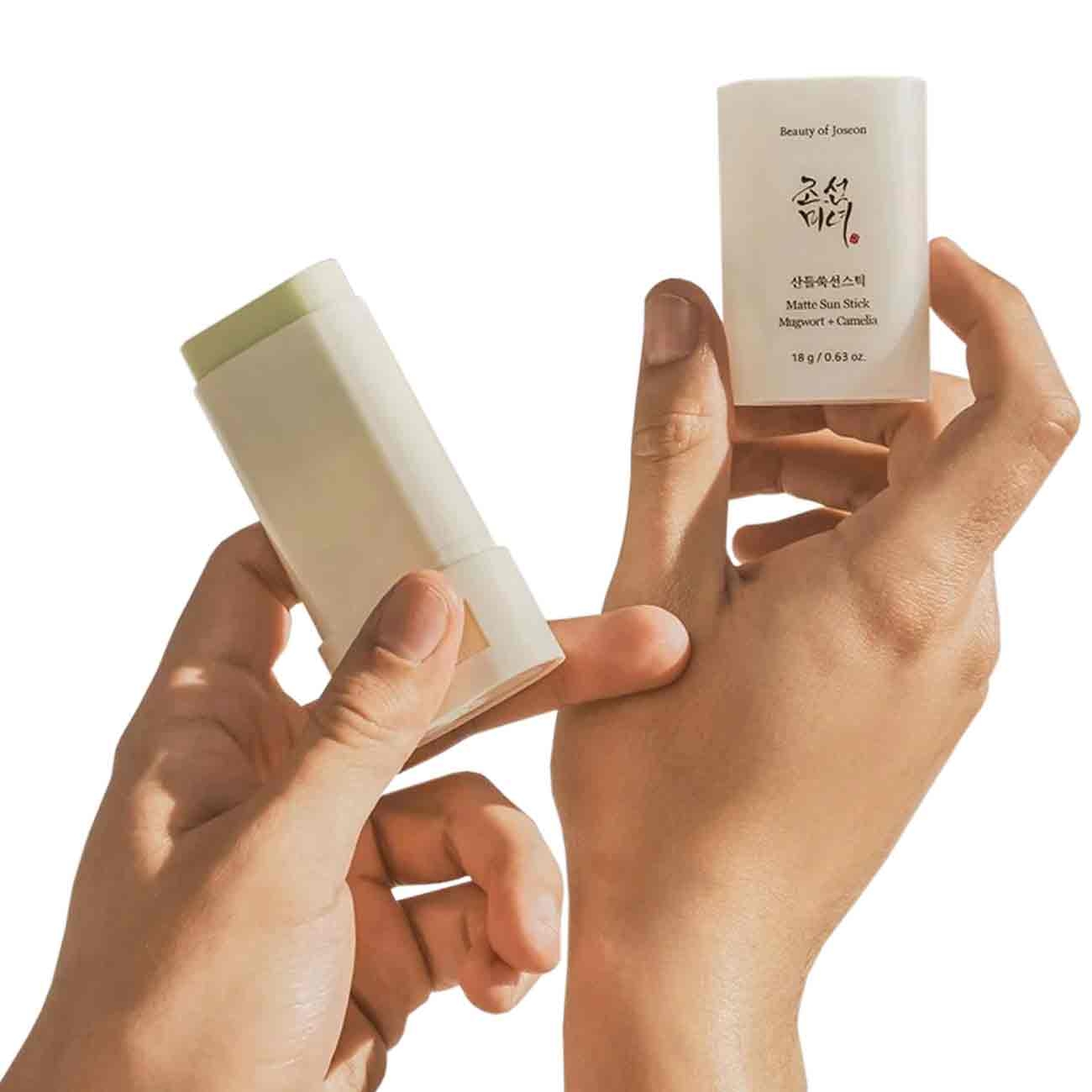 În cartea “Gyuhap Chongseo” ( Regulation Book) scrisă de Bing Heo-gak Lee, aceasta încearcă să facă viața femeilor mai ușoară prezentându-le metode și mici trucuri pentru viața de zi cu zi, despre îngrijirea pielii, îmbrăcăminte, sfaturi despre parenting, organizarea casei sau grădinărit. Inspirat de această carte, brandul Beauty of Joseon creează produse din ingrediente din plante ce au fost folosite încă de pe timpul dinastiei Josen. Beauty of Joseon Matte Sun Stick: Mugwort + Camelia este un stick de protecție solară, vegan fără uleiuri esențiale și parfumanți artificiali. Formulă este mată și conține pudră de silice, extracte de Artemisia Capillaris (mugwort), extractele de ceai verde ce ajută în procesul de hidratare și revitalizare a tenului.