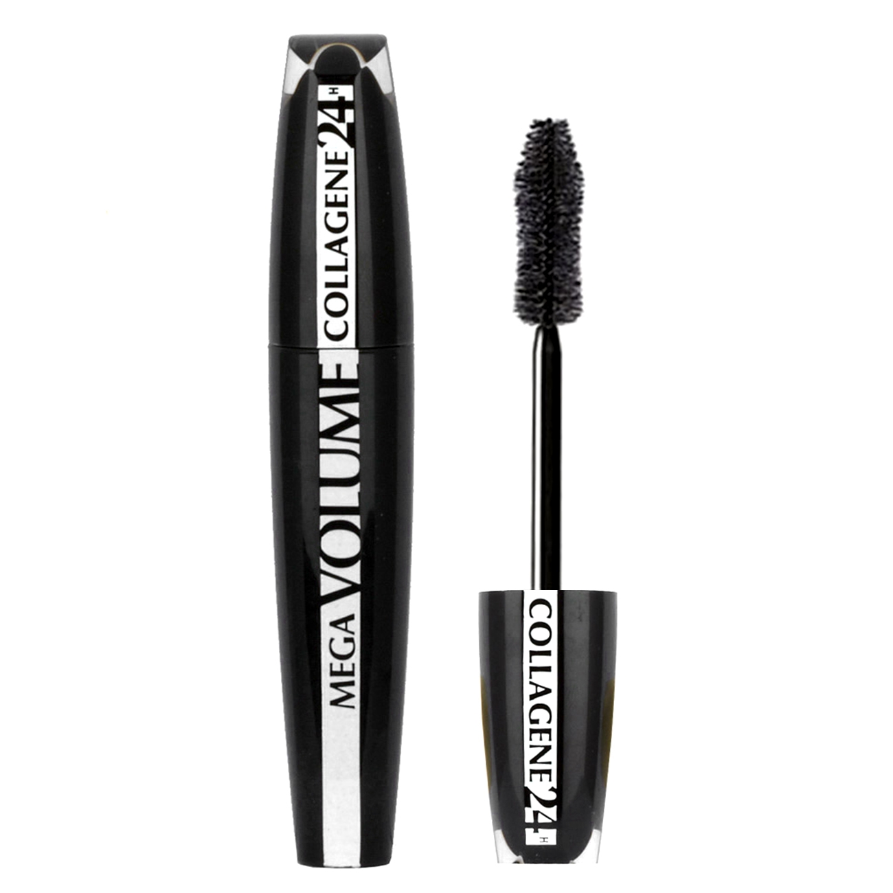 Maxi-volum, maxi-culoare, maxi-gene! Si asta nu este tot ce iti promite mascara L'Oreal Mega Volume Collagene Extra Black! Culoarea rezista pana la 24 de ore fara sa cada de pe gene sau sa se intinda! Acest mascara bogat pigmentat este imbogatit cu un ingredient unic, Hydra-Collagene, pentru a oferi volum si definire incredibila genelor tale. Aplicatorul dublu fata de aplicatoarele obisnuite incarca genele cu o cantitate ideala de culoare pe care o intinde uniform de la radacina la varf, fara sa lipeasca genele.
