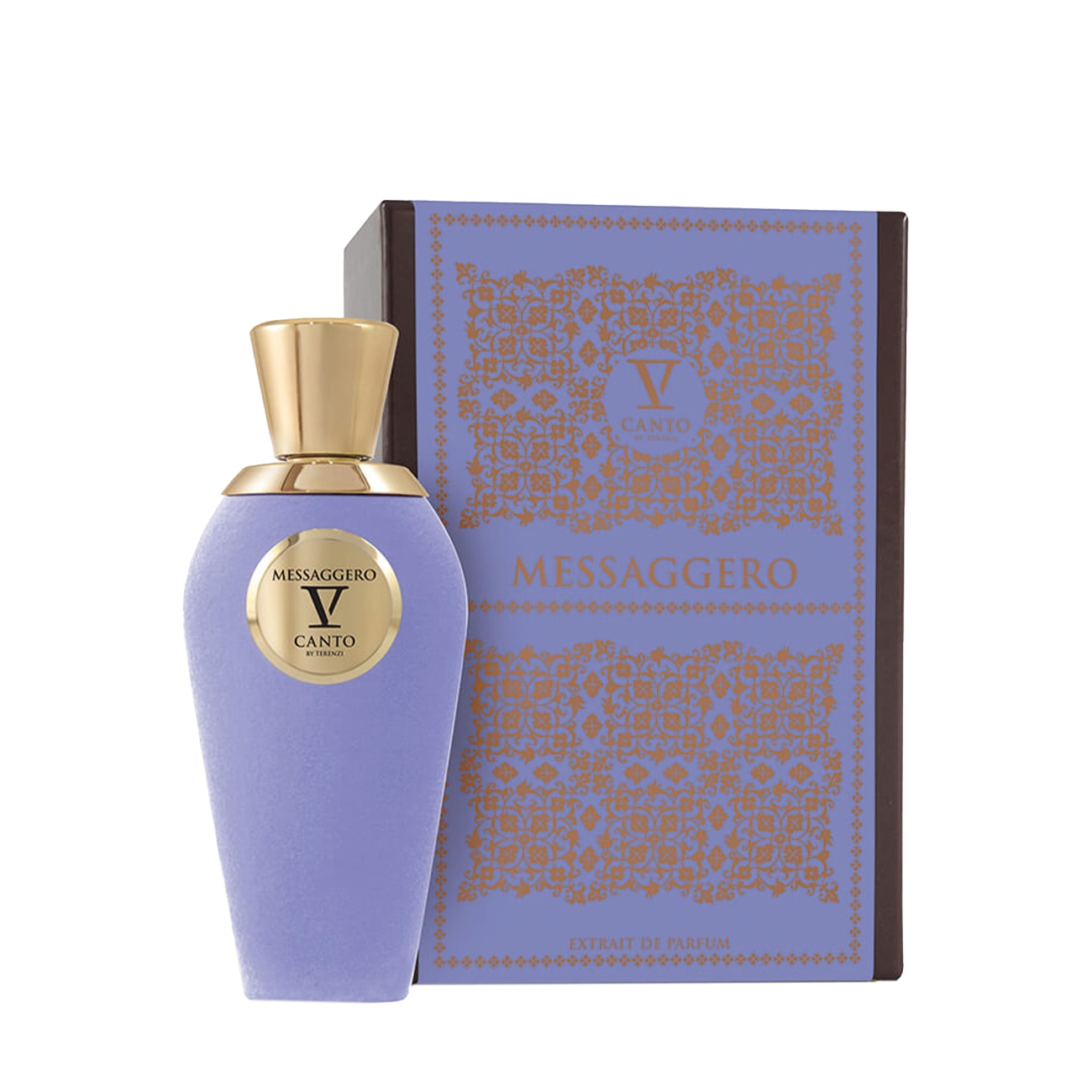 V Canto este o colecție de parfumuri semnată de Cereria Terenzi, iar inspirația din spatele acesteia constă în dragostea aprinsă purtată pentru locurile natale. Aceste parfumuri conțin câte o bucățică de istorie exprimată în arome. Messaggero este un parfum care capturează esența călătoriilor și a legăturii tăcute dintre locuri și oameni. Inspirat de o eră de aventuri solitare, parfumul încarcă fiecare notă cu energii și amintiri, fără a avea nevoie de cuvinte. Compoziția se deschide cu tămâie și trandafir, urmată de o adiere revigorantă de grapefruit și cocos, îmbogățite cu accente dulci de cumarină, caramel și lactonă. Acest parfum îmbină intensitatea explorării cu delicatețea momentelor de răsfăț, fiind perfect pentru globetrotterii ce apreciază magia fiecărui loc vizitat.