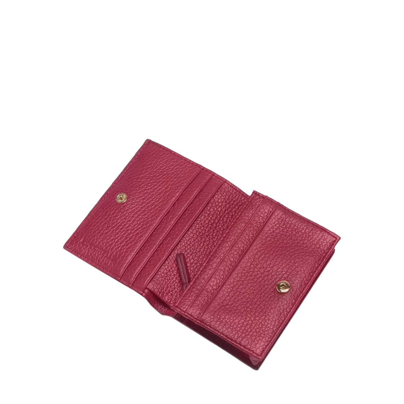 Acest portcard Coccinelle, realizat din piele naturală cu textură fină, este o alegere practică și elegantă pentru organizarea cardurilor esențiale. Designul compact îl face ușor de purtat în orice geantă, iar logo-ul metalic auriu adaugă un detaliu sofisticat.