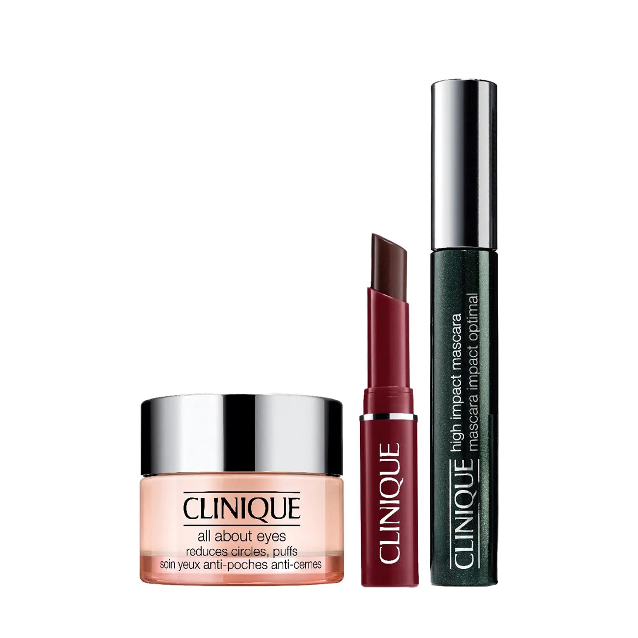Clinique a luat naștere în anul 1968 în New York, având ca misiune dezvoltarea celor mai sigure și eficiente formule care să aibă rezultate remarcabile. Acest set versatil combină produsele esențiale de îngrijire și machiaj, oferindu-ți tot ce ai nevoie într-un format compact și ideal pentru călătorii. Setul include All About Eyes, un gel revitalizant pentru zona ochilor ce reduce cearcănele și pungile, Almost Lipstick în nuanța Black Honey pentru buze hidratate și ușor colorate, și High Impact Mascara în nuanța Black pentru gene voluminoase și definire. O soluție perfectă pentru a adăuga îngrijire și frumusețe în fiecare zi, oriunde te-ai afla!