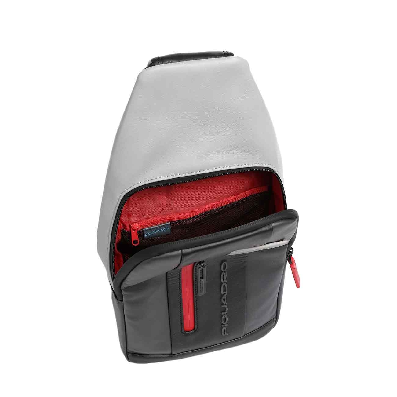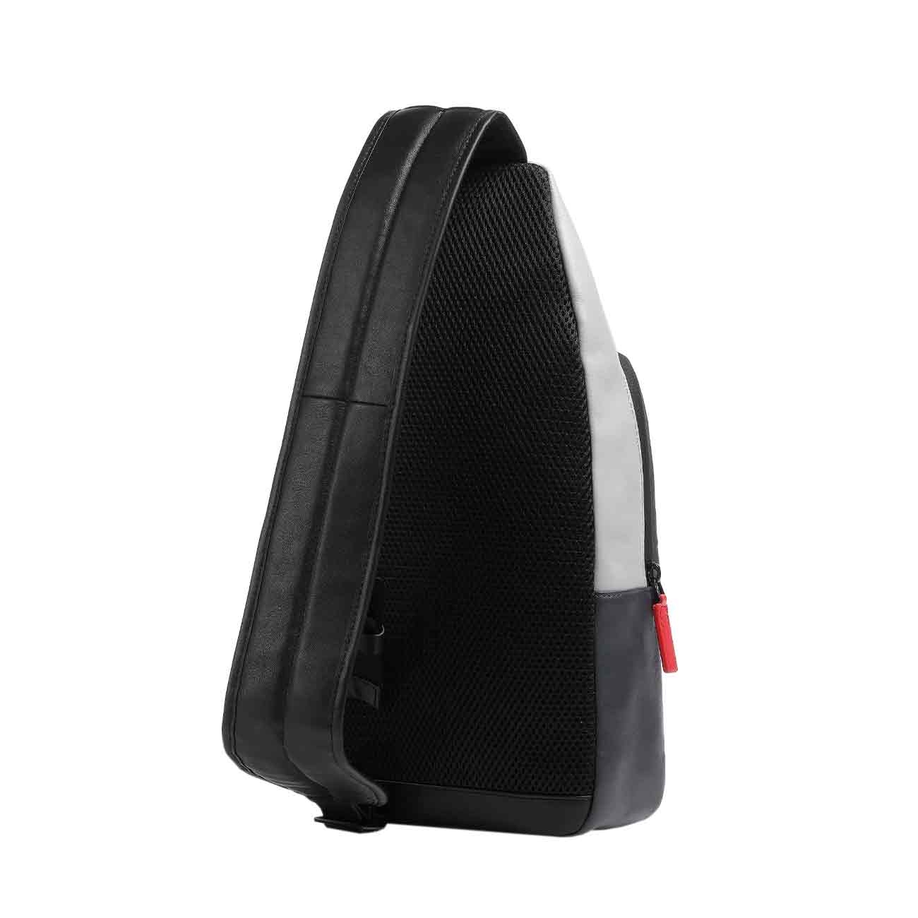 Brandul Piquadro este specializat în articole și accesorii destinate oamenilor de afaceri care sunt mereu în mișcare. Felul original în care acest brand îmbină inovațiile tehnice, funcționalitatea și designul fac dintr-un articol Piquadro un accesoriu cu stil și inteligent. Mono Sling Bag este un rucsac de umăr fabricat din material reciclat. Rucsacul de umăr este proiectat pentru a fi ușor și pentru a oferi o alternativă compactă la rucsacurile tradiționale. Buzunarul special pentru AirPods indică faptul că rucsacul este conceput pentru a oferi acces ușor și rapid la căștile wireless.