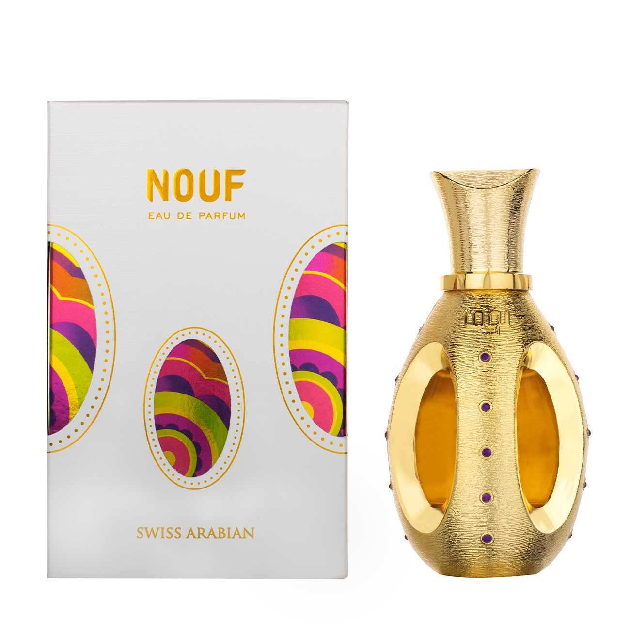 Swiss Arabian a fost fondat în anul 1974 de către Hussein Adam Ali, fiind prima casă de parfumuri din Emiratele Arabe Unite. Swiss Arabian își propune să creeze amestecuri perfecte de ingrediente naturale extrase atât din Est, cât și din Vest, reușind datorită experienței și expertizei lor să creeze un parfum pentru fiecare persoană care dorește să-și găsească amestecul unic ce o reprezintă. Nouf este un parfum unisex care te va purta pe culmile pasiunii! Povestea parfumului are un început energic, cu note citrice de lămâie, grapefruit și bergamotă ce se contopesc cu note picante de ambră și piper, care își fac simțită prezența în inima parfumului. Aroma semnăturii tale inconfundabile este finalizată de lemnul de cedru și lemnul de trandafir, care își adaugă acordurile puternice oferind un final grandios poveștii Nouf.