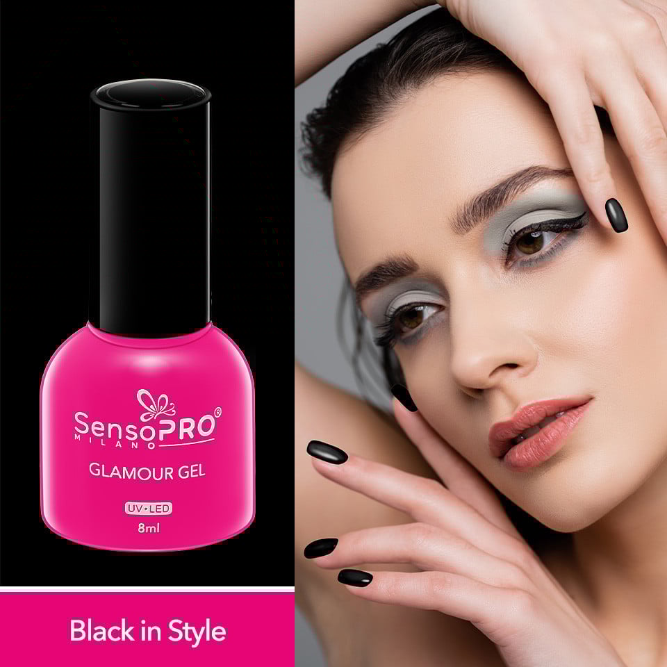 Oja Semipermanenta Glamour Gel SensoPRO Milano 8ml, Black in Style #02, Oja Semipermanenta