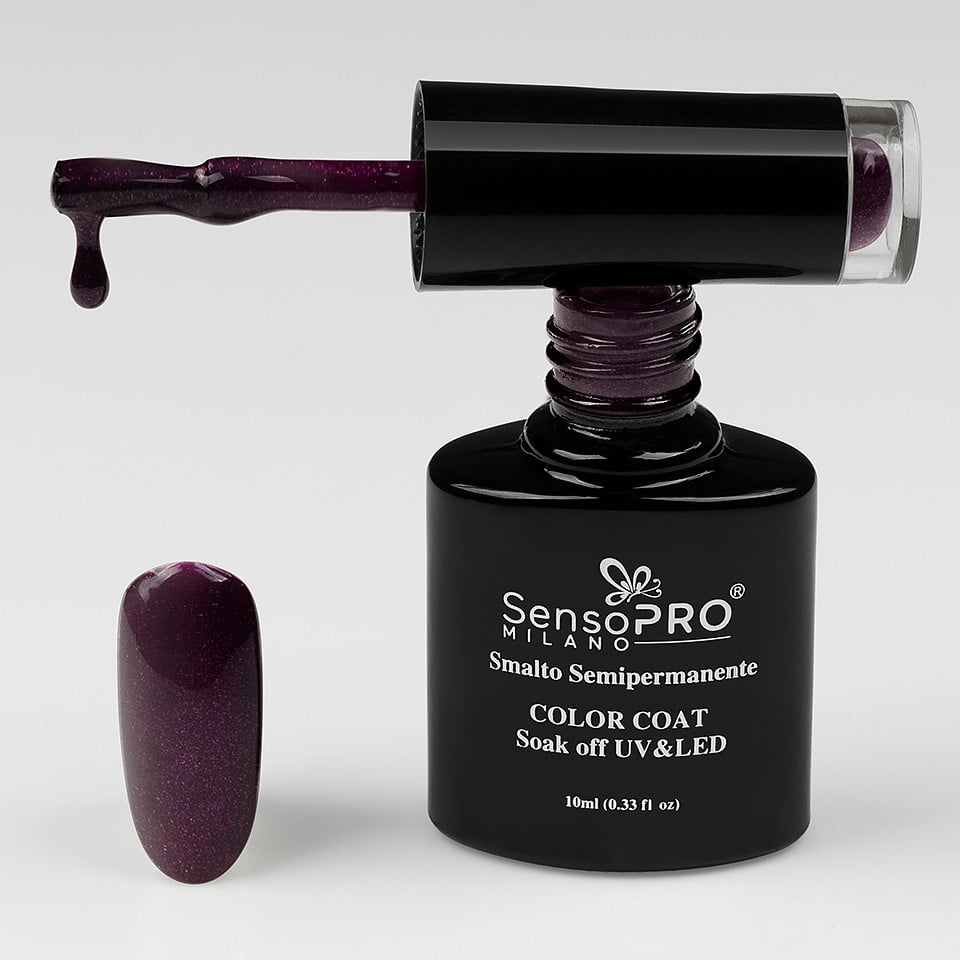 Oja Semipermanenta SensoPRO 10ml culoare Mov - 039 Shiny Magenta este flexibila, pigmentata, are textura cremoasa si fluida ce permite aplicarea usoara. Cu aceasta oja poti avea o manichiura ce rezista pe unghii pana la 4-6 saptamani. Pensula permite o aplicare usoara si precisa in zona cuticulei. Poate fi aplicata peste baza, gel sau polygel. Mod de aplicare: - Dati forma unghiilor, impingeti si indepartati cuticulele apoi matuiti suprafata unghiei cu un buffer. - Aplicati Primer si uscati 1 minut la aer. - Aplicati Base Coat si uscati unghia 2 minute in lampa UV sau 60 secunde in lampa LED. - Aplicati un strat de oja si uscati unghia 2 minute in lampa UV sau 60 secunde in lampa LED. Pentru un efect mai intens, aplicati al doilea strat de oja si uscati. - Aplicati Top Coat si uscati 2 min in lampa UV sau 60 secunde in lampa LED. Mod indepartare: - Prin dizolvare in Remover: Se pileste suprafata unghiilor cu pila, se aplica peste suprafata unghiilor un servetel imbibat cu Remover, se infoliaza unghia si se asteapta 10-15 min. Se indeparteaza resturile cu ajutorul unui betisor de portocal. - Prin pilire cu freza electrica: Materialul se indeparteaza cu ajutorul unei freze electrice. Se recomanda folosirea unui bit cu duritate medie-mica.