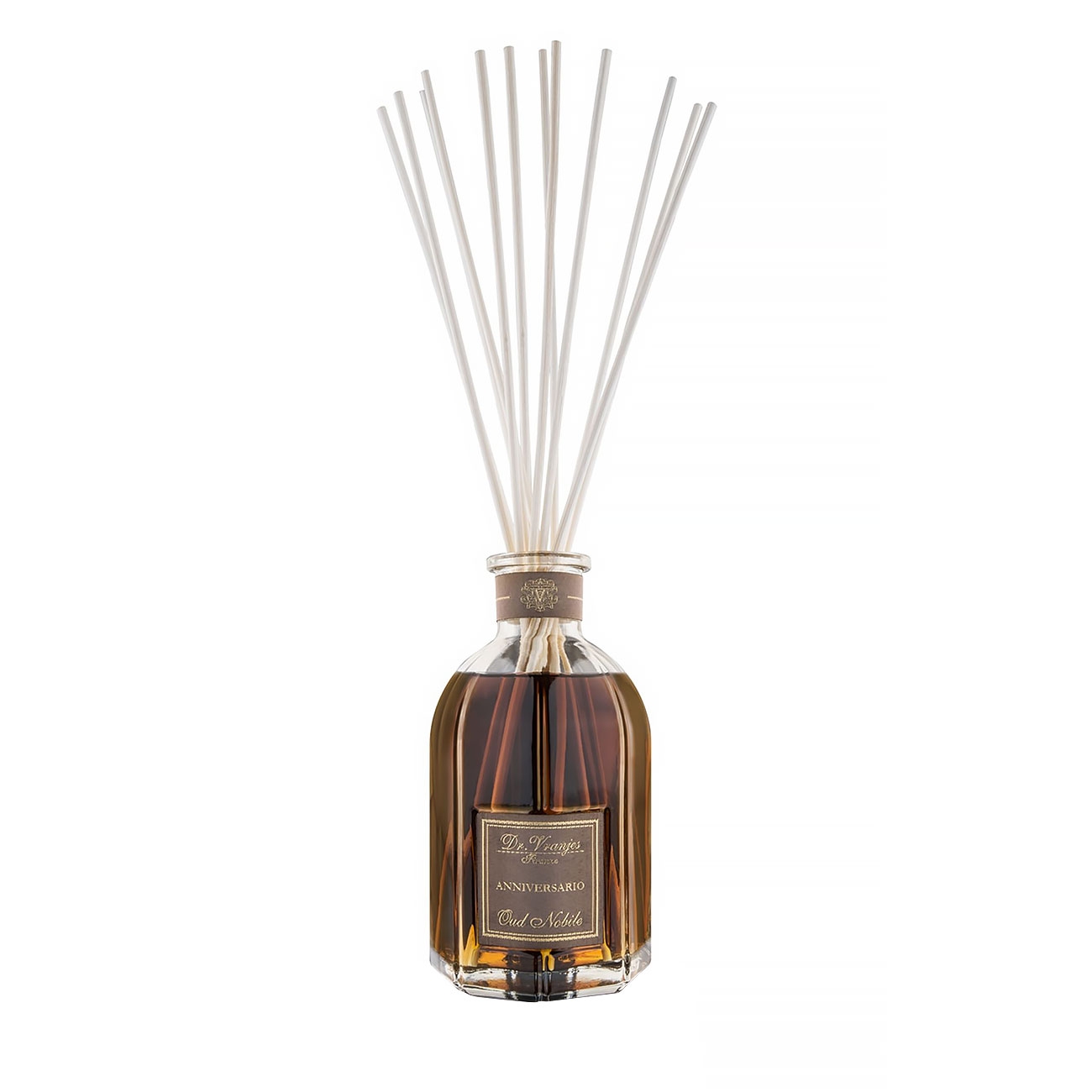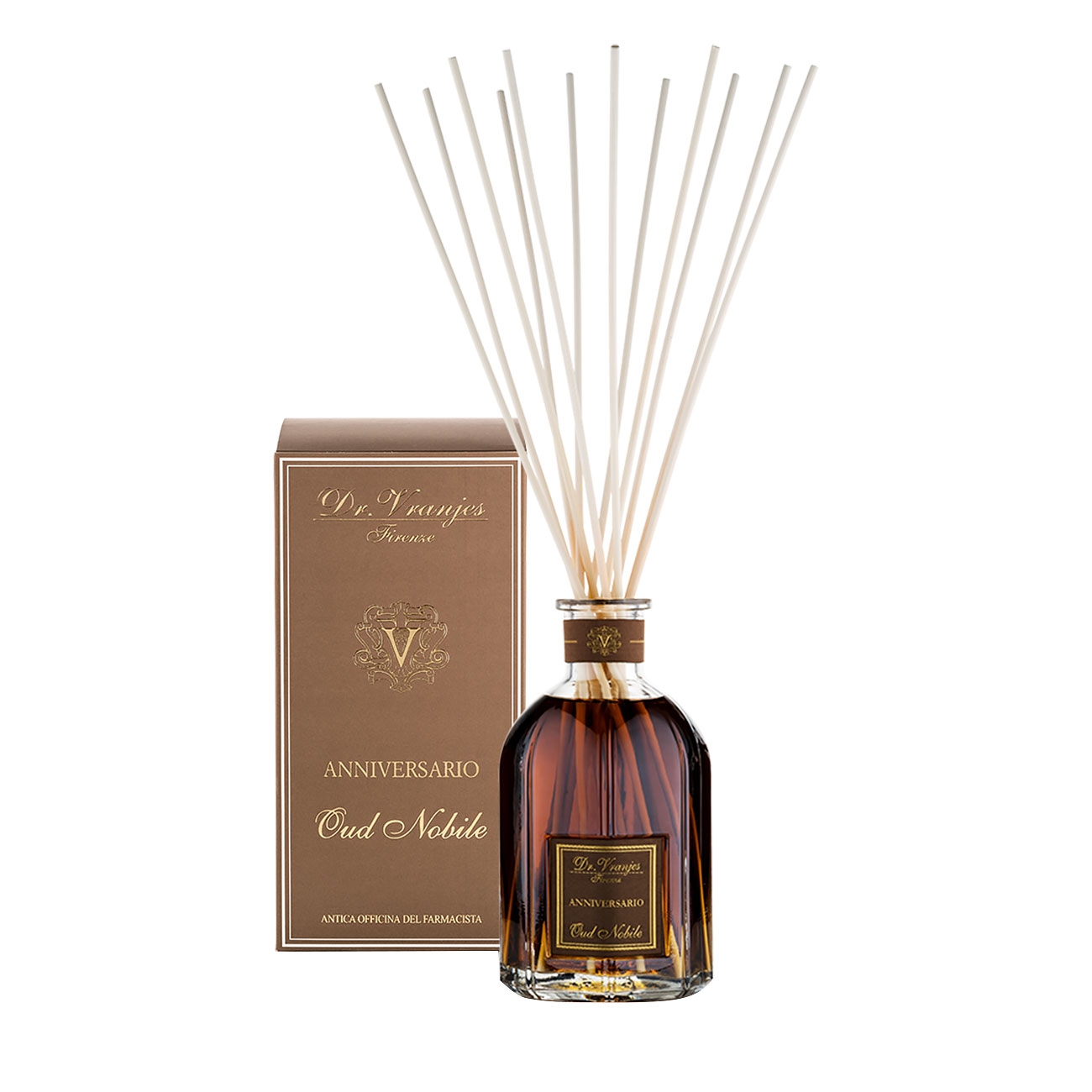 De-a lungul a peste 40 de ani, Dr. Vranjes Firenze a reușit să captureze eleganța Florenței, tradiția meșteșugurilor și arta parfumeriei într-o sticlă, oferind astfel o experiență multisenzorială prin arome pentru casă și produse de înfrumusețare personală. Oud Nobile Vase Glass Bottle este un parfum ambiental sofisticat, care aduce împreună rășina de oud delicată cu note orientale de tămâie și smirnă, completate de prospețimea bergamotului mediteranean. Această combinație olfactivă creează o punte între Est și Vest, oferind un echilibru perfect între misterul și bogăția aromelor orientale și claritatea luminoasă a citricelor.