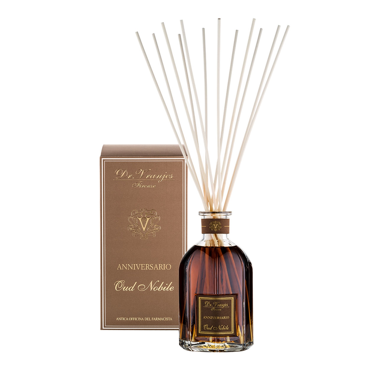 De-a lungul a peste 40 de ani, Dr. Vranjes Firenze a reușit să captureze eleganța Florenței, tradiția meșteșugurilor și arta parfumeriei într-o sticlă, oferind astfel o experiență multisenzorială prin arome pentru casă și produse de înfrumusețare personală. Oud Nobile este un parfum ambiental sofisticat, care aduce împreună rășina de oud delicată cu note orientale de tămâie și smirnă, completate de prospețimea bergamotului mediteranean. Această combinație olfactivă creează o punte între Est și Vest, oferind un echilibru perfect între misterul și bogăția aromelor orientale și claritatea luminoasă a citricelor.