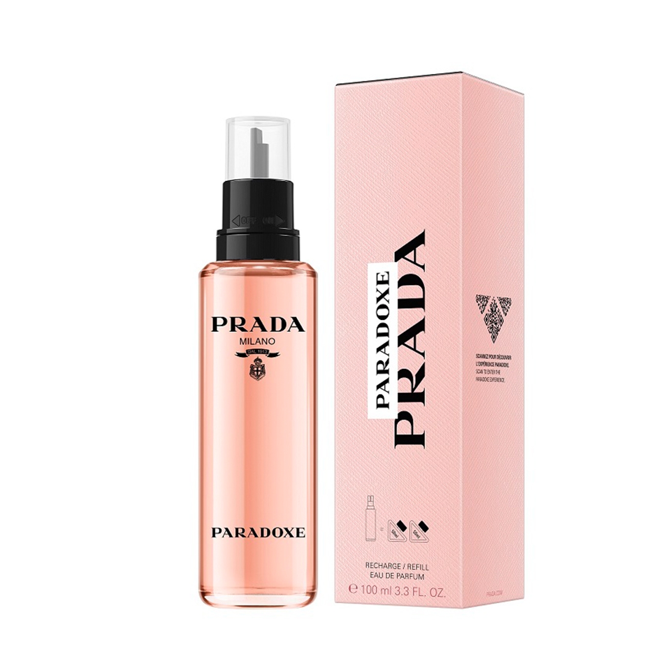 PARADOXE este noul parfum feminin reincarcabil ce poarta semnatura couture Prada, este expresia esentiala a feminitatii. Cu Paradoxe, vei explora reconcilierea neasteptata a contradictiilor si vei celebra expresia de sine multidimensionala si eliberarea care vine cu a nu fi niciodata la fel, mereu tu insuti. Un parfum imposibil de incadrat in tipare, care mereu se reinventeaza pe piele si evolueaza. O noua dimensiune senzoriala, o conexiune atemporala si avangarda dintre natura si inovatie intr-un parfum cu buchet floral oferit de contrastele prospetimii mugurilor de Neroli si de caldura vibranta a notelor de ambra, toate infuzate cu o molecula revolutionara de mosc pentru un parfum subtil, dar remarcabil. Molecula inovatoare denumita Serenolide reinventeaza parfumeria oferind o intensitate nemaintalnita. Acordul lemnos de Ambrofix si cel pudrat de Serenolide redefinesc senzualitatea si intensitatea intr-o dimensiune paradoxala puternica si necontenita. Sticla Paradoxe reinventeaza cel mai emblematic cod PRADA - logo-ul sau sub forma de triunghi. Forma sa radicala este atenuata de unghiurile rotunjite, in timp ce culoarea delicata, roz coral a parfumului contrasteaza cu capacul negru si logo Prada. Sticla are un design unic, recognoscibil instant. Sticla are un design sustenabil si poate fi reincarcata. Paradoxe este un parfum care este facut sa reziste. Descoperiti prima colectie de parfumuri de la PRADA complet reincarcabila, care permite productia a mai putine ambalaje si utilizarea de materiale. Faceti o alegere moderna si mai durabila pentru dvs. si pentru planeta. INGREDIENTE Debuteaza cu bergamota de Calabria, neroli si Ambrofix™, ale carui tonuri confera parfumului caldura. Apoi, in prim-plan trec mandarina dulce, floarea de portocal si benzoinul. Printre notele de baza ale parfumului, cele care persista cel mai mult pe piele, veti recunoaste para delicioasa, iasomia, vanilia gurmanda de Madagascar si moscul, acesta din urma sub forma moleculei revolutionare Serenolide™. CUM SE FOLOSESTE? Parfumul este intensificat de caldura propriului corp. Aplicati in spatele genunchilor si incheieturile coatelor pentru un parfum mai puternic si de durata. Dupa aplicare, evitati frecarea sau tamponarea pielii. Acest lucru contopeste ingredientele parfumului, determinandu-l sa isi piarda din intensitate mai repede. Daca preferati sa puneti parfum pe incheieturile mainilor, asigurati-va ca il aplicati din nou dupa spalarea lor, deoarece spalarea tinde sa diminueze puterea parfumului.
