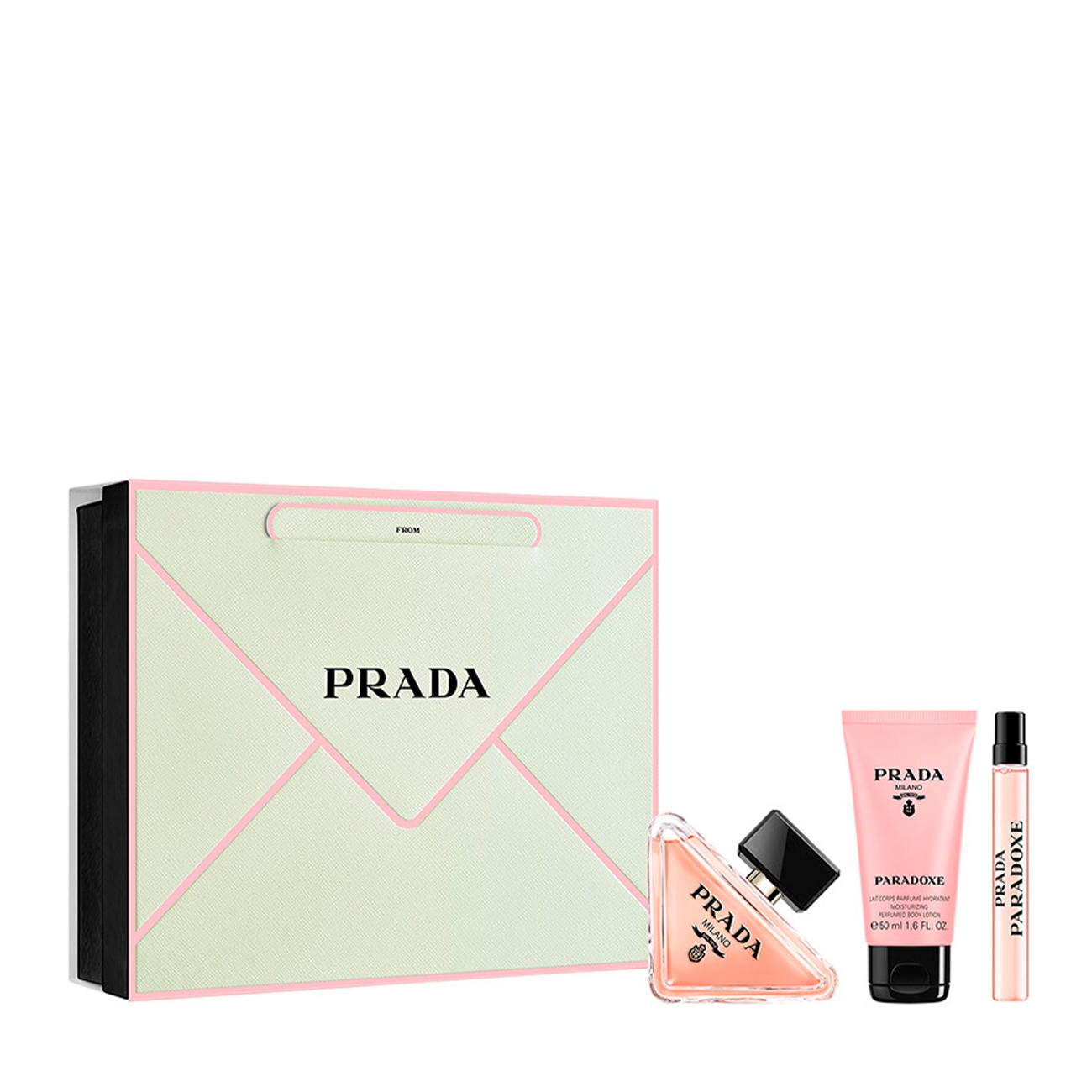 Setul cadou Prada Paradoxe este alegerea perfectă pentru a aduce bucurie cuiva drag. Ambalat într-un mod elegant, acest parfum de lux feminin va încânta orice femeie de la prima vedere. Setul include o sticlă completă de parfum, alături de o miniatură practică pentru poșetă, iar cosmeticele parfumate din set contribuie la prelungirea persistenței acestuia pe piele. Notele rafinate de bergamotă calabriană, mandarină și pară la început se îmbină cu extrase din portocală amăruie, floare de portocal și iasomie sambac, iar baza de ciihlimbar, benzoin, vanilie din Madagascar și mosc alb completează o compoziție florală, sofisticată. Cu un ambalaj deosebit, acest set cadou este o alegere inspirată, care va aduce bucurie oricărei femei.
