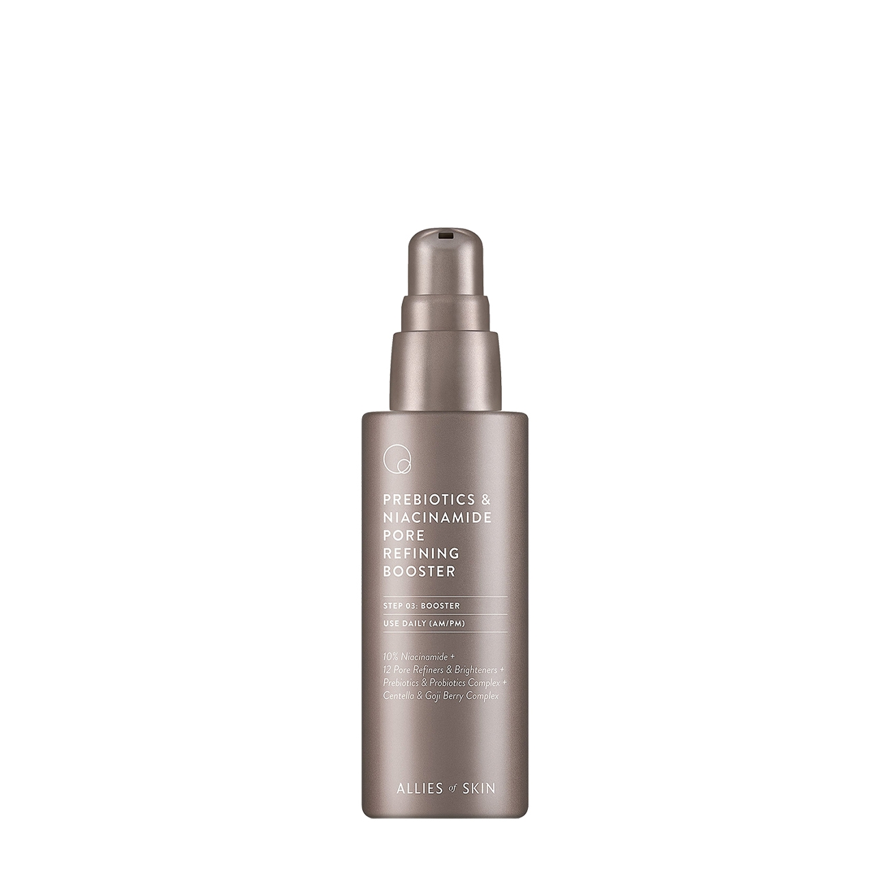 Alies of Skin este un brand de beauty care pune accent pe eficiență și rezultate vizibile. Brand-ul se angajează să utilizeze ingrediente active dovedite științific, precum Vitamina C, factori de creștere și Retinoizi, în concentrații maxime. Misiunea lor este să te ajute să obții mai multe beneficii din mai puține etape, urmând o abordare pe care o numim „Supercharged Clinical”. Prebiotics & Niacinamide Pore Refining Booster este un ser puternic și complex, formulat cu 10% niacinamidă și o combinație de 12 agenți activi pentru rafinarea porilor și iluminarea pielii. Acesta include ingrediente benefice precum prebioticele și probioticele, Centella Asiatica și complexul Goji Berry, care lucrează împreună pentru a reduce vizibil dimensiunea porilor și a întări bariera naturală a pielii.